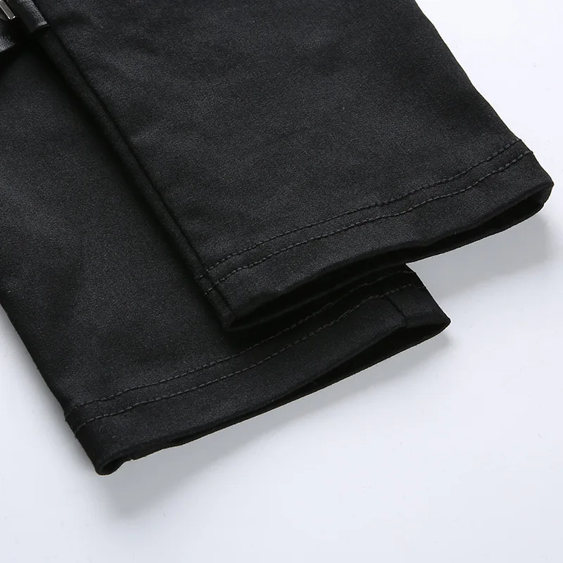 Модные узкие брюки; Уличная одежда; Брюки в стиле панк; Женские эластичные брюки с высокой талией; Лоскутные кожаные облегающие брюки для бега; Капри