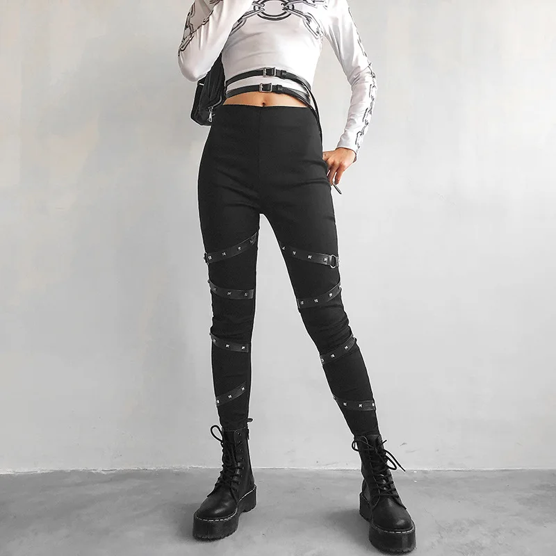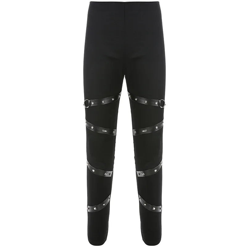 Брюки женские с заклепками, готические Узкие однотонные повседневны...