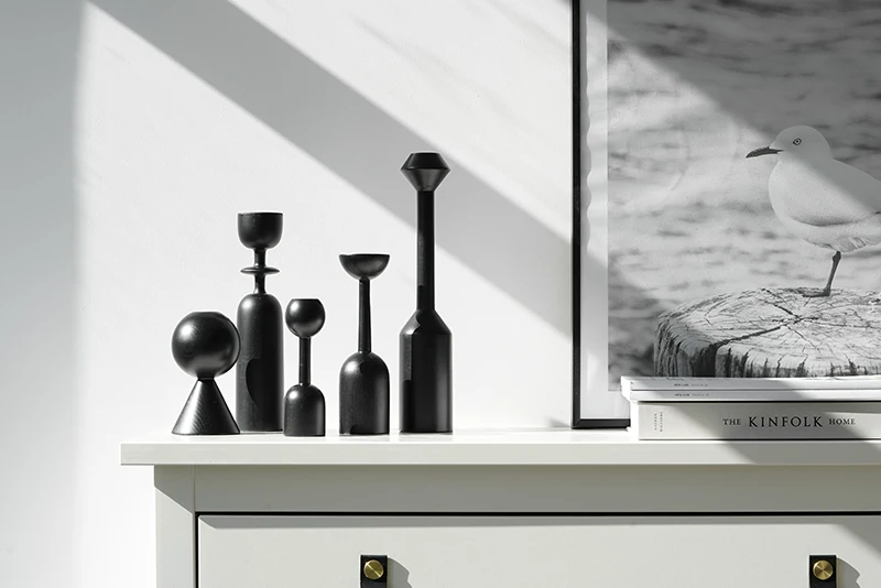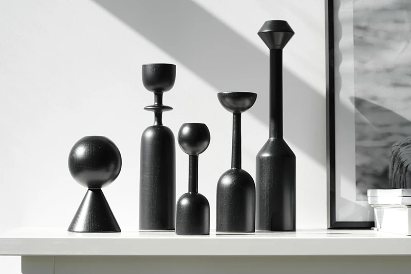 Черный деревянный подсвечник, качественный черный подсвечник MJ