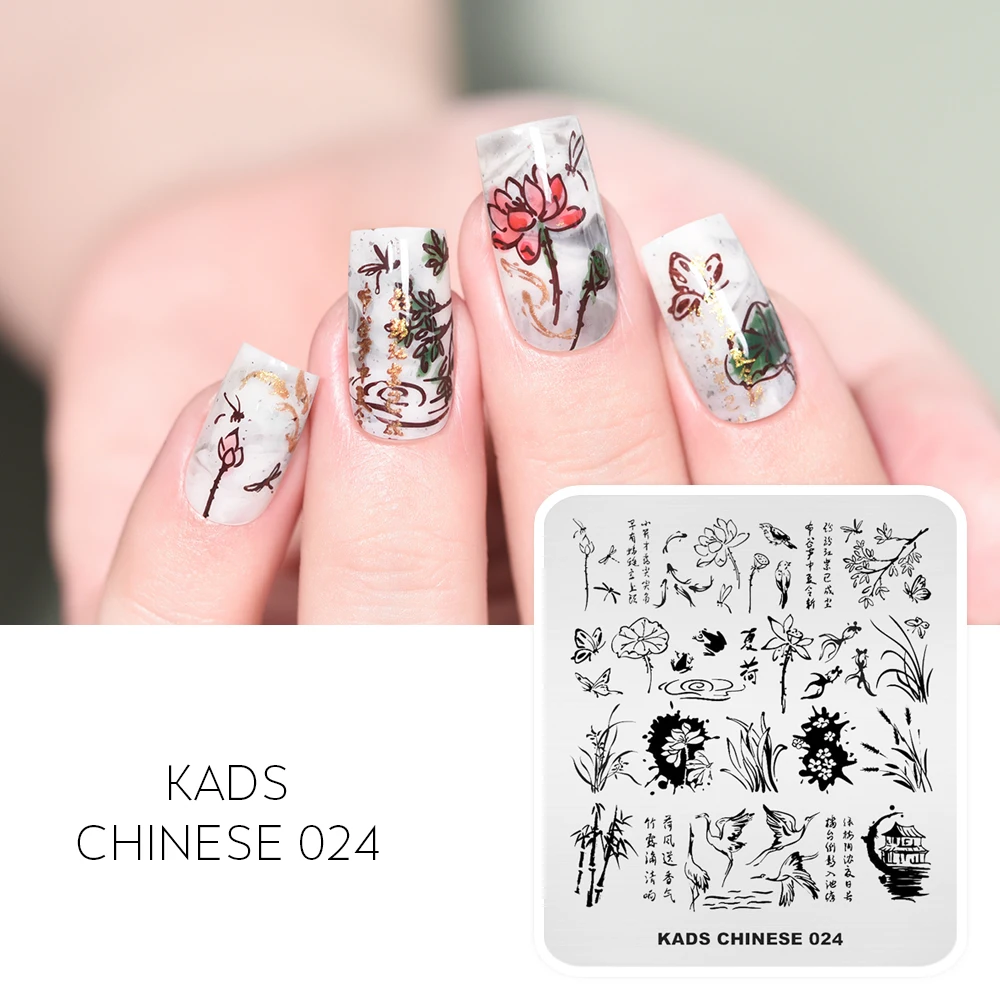 Пластины AriesLibra в китайском стиле для стемпинга ногтей, журавль, лотос, смешанный узор, дизайн ногтей, геометрическое изображение, трафаретная пластина