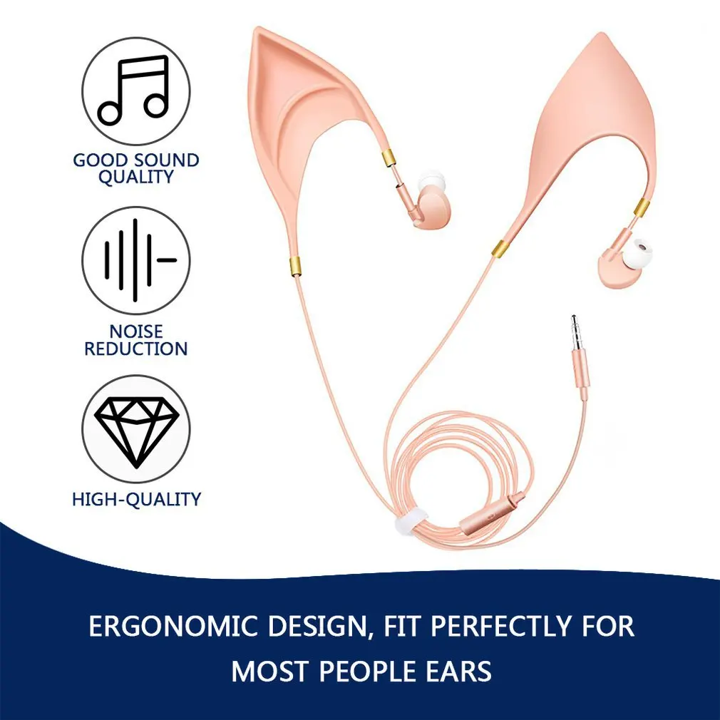 Наушники в форме эльфа, шумоподавляющие наушники, универсальные проводные наушники со встроенным микрофоном