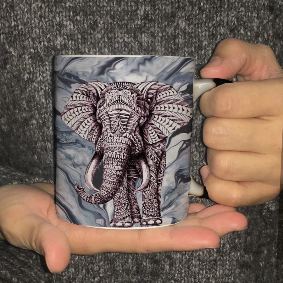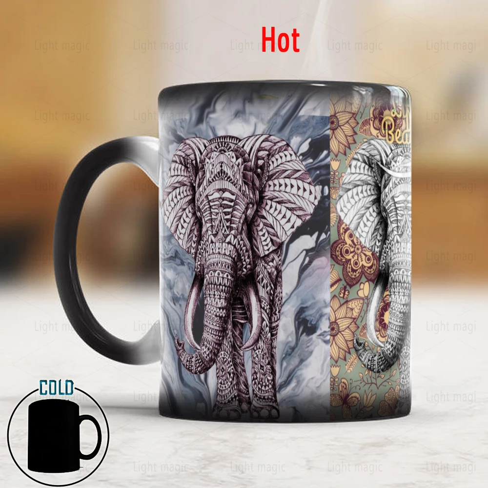 Струйная Печать, слон, магия, изменяющиеся кружки цветов, творческая керамика, чашки для молока кофе и кружки