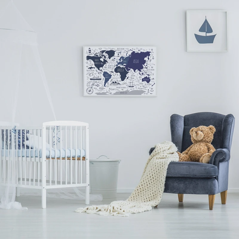 Темно-синяя морская карта мира, плакат для мальчиков, декор комнаты, мультяшная карта, Картина на холсте, настенные художественные принты, детская комната, декор для спальни