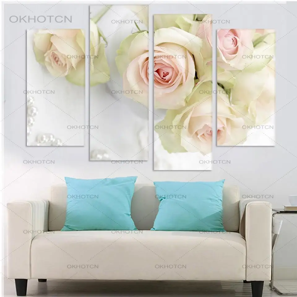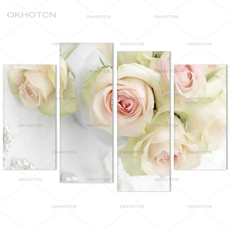 Розы, цветы, 4 шт., холст, картины, постеры и принты, настенные картины для гостиной, Декор, минималистичный, красивый, бледно-розовый