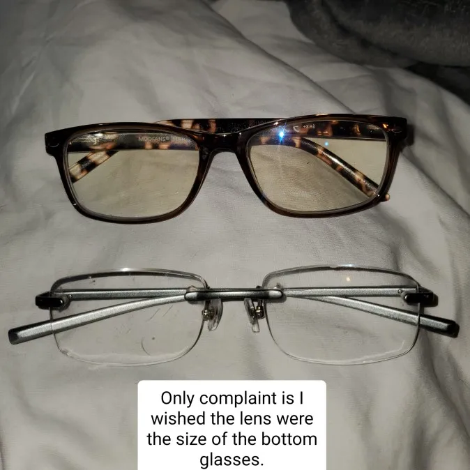 Я купил кристалл + 300 и черепаховую оболочку + 350 очков. Я хотел бы, чтобы форма глаз была разной. Во время покупки. Это был единственный вариант синего света с многоуровневыми линзами для чтения. Я не знаю, будет ли это работать. Я использую очки для чтения + 300 изредка + 350. Я знаю, что мое видение размыто после использования телефона или компьютера любой длины. Я знаю, что мне нужно будет попробовать синюю пару с многоуровневыми линзами. Усталость значительно уменьшается. Мне не нравится стиль оправы, но я буду носить их в любом случае, потому что они работают!