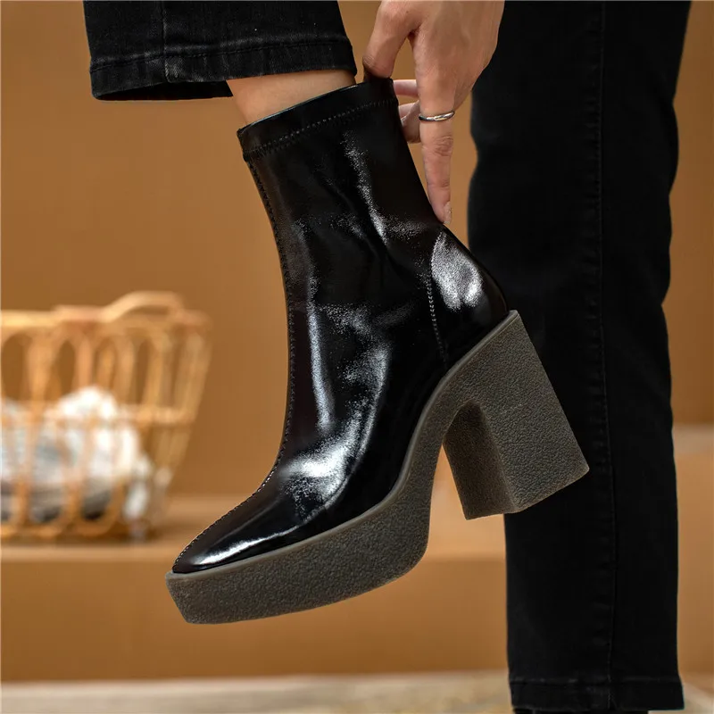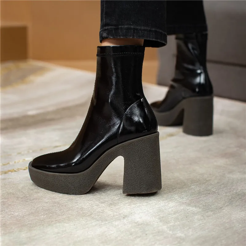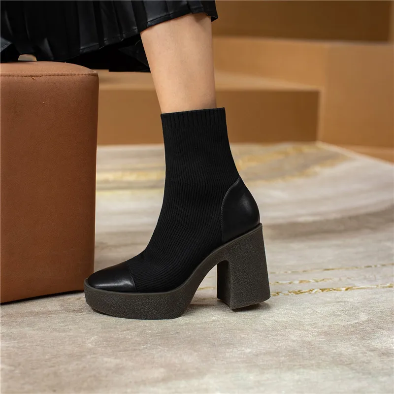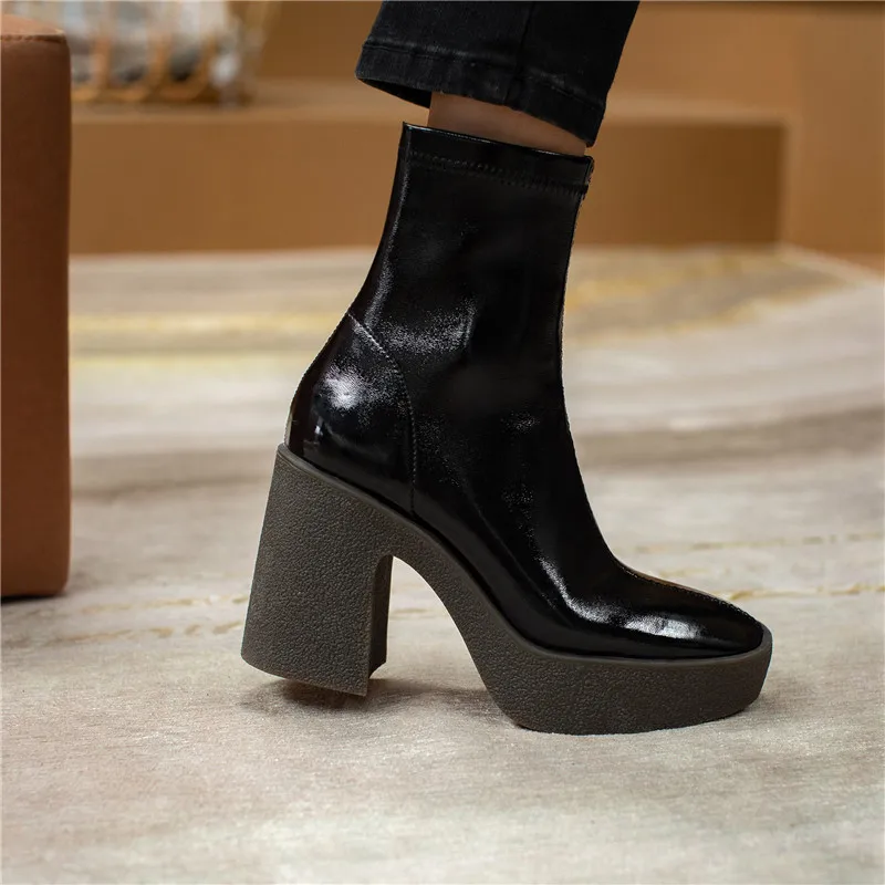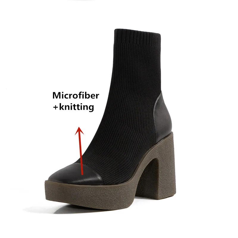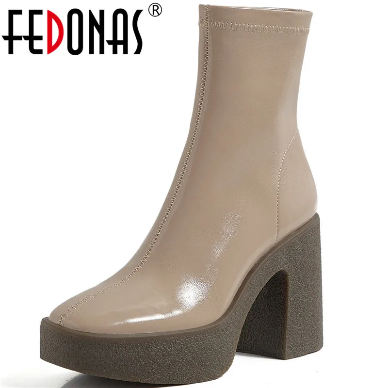 Женские ботильоны из микрофибры FEDONAS, черные ботильоны на платформе, на толстом высоком каблуке, базовая рабочая обувь для осени и зимы
