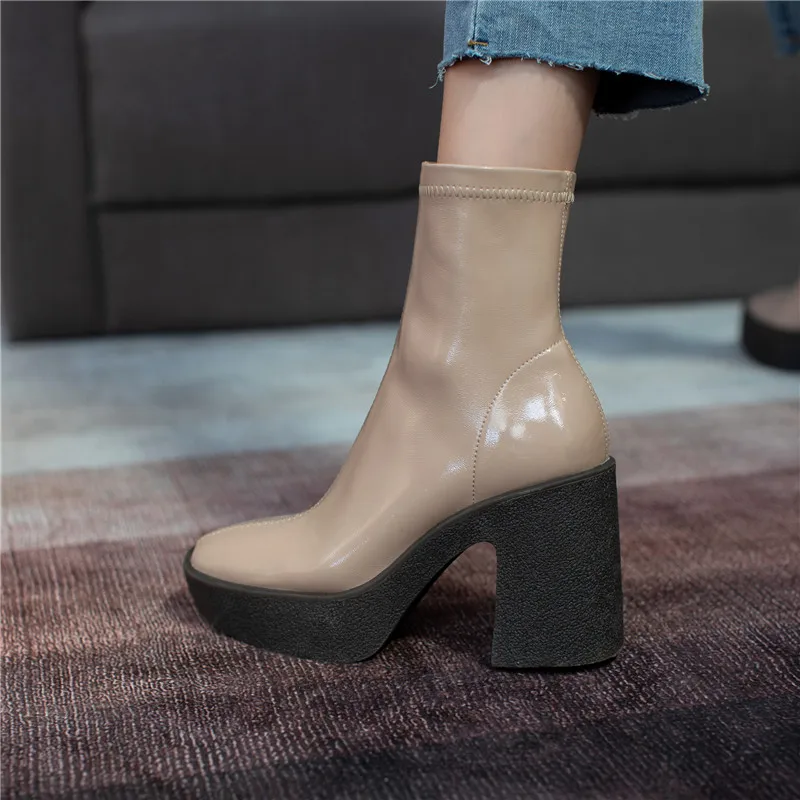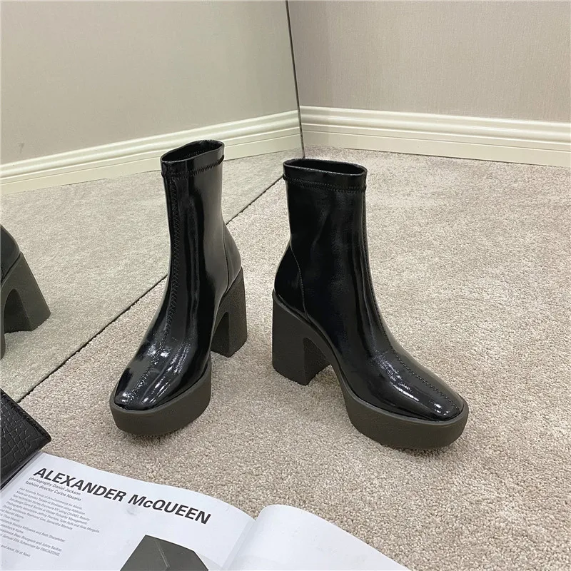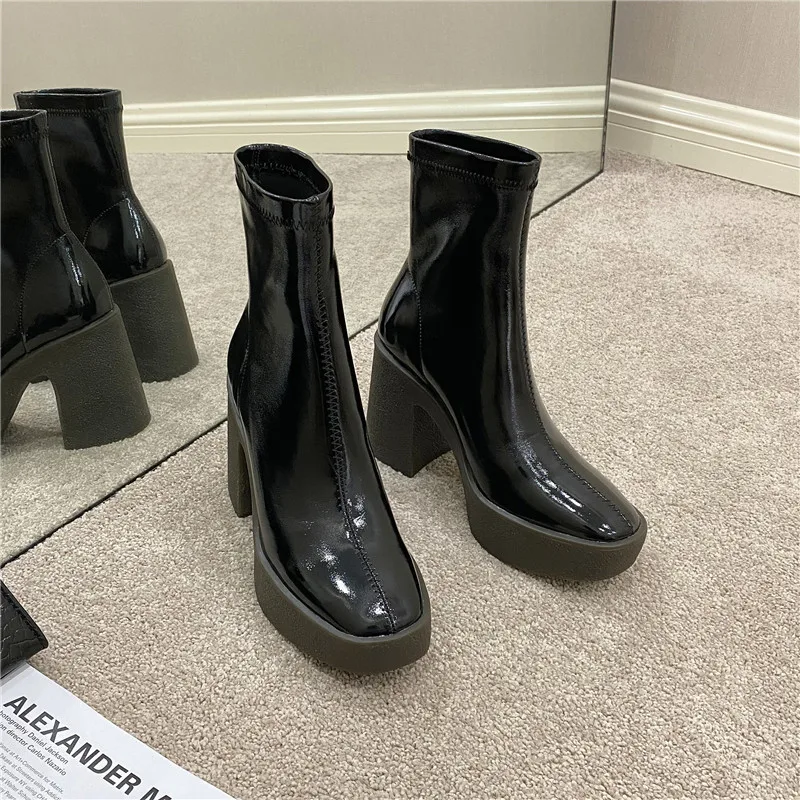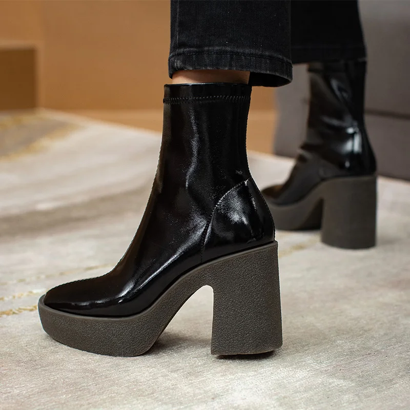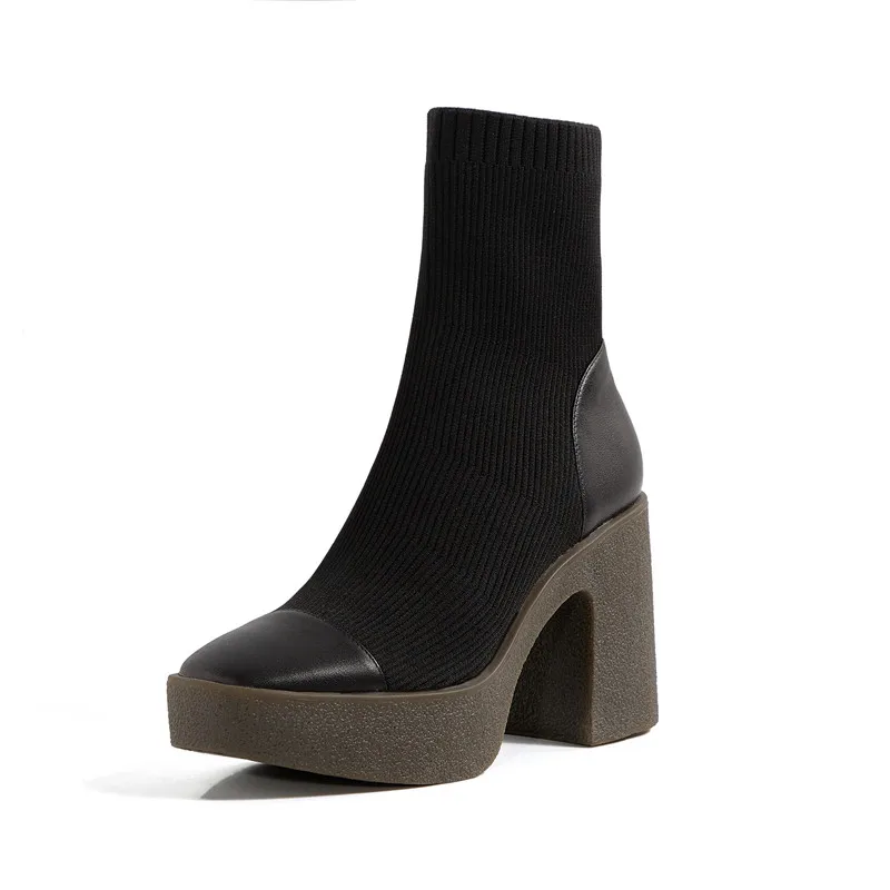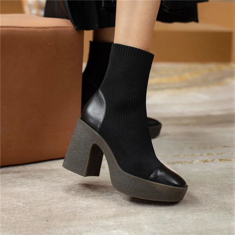 Женские ботильоны из микрофибры FEDONAS, черные ботильоны на платформе, на толстом высоком каблуке, базовая рабочая обувь для осени и зимы