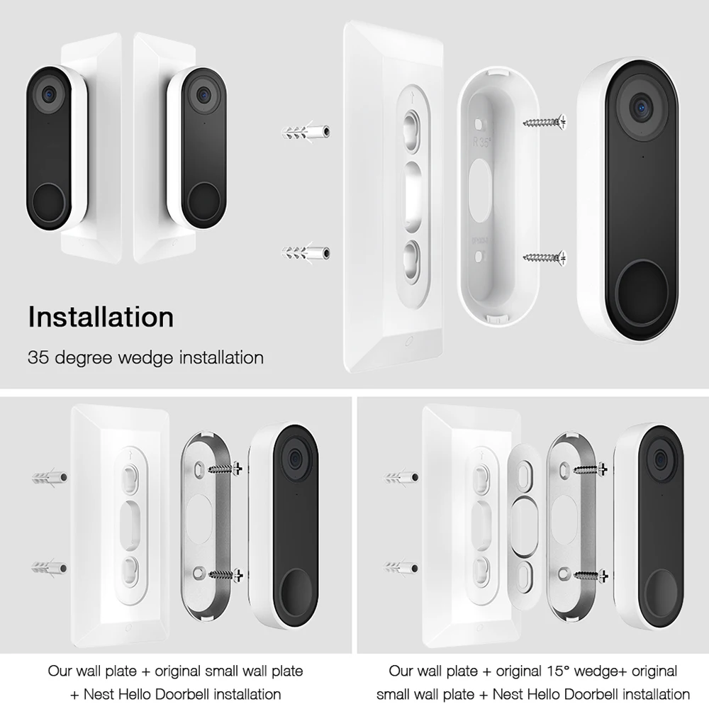 Примечание: Не включает дверной звонок Nest Hello. Особенности:Хороший, чистый дизайн, который оставляет ваше гнездо Привет дверной звонок выглядит лучше, чем раньше.Пластина легко устанавливается, чтобы соответствовать вашему гнезду Hello дверной звонок и совместима с регулируемой танкеткой.Пластина достаточно большая, чтобы спрятать отверстия, сделанные предыдущими видео дверными звонками, и красиво скрыть любые отметки или отверстия вашего старого дверного звонка.Изготовлен из жесткого, прочного АБС-пластика, каждая крышка с двойным покрытием для обеспечения долговечности.Наклон влево и вправо 35 градусов: этот набор клина может быть наклонен на 35 градусов влево и вправо, чтобы вы могли получить более широкий обзор. Спецификация:Тип: настенная пластинаМатериал: АБС-пластикЦвет: белый/черный (опционально)Посылка Размеры: 15,7*8,7*4 см/6,2*3,4 * 1.6inПосылка Вес: 90 г/3,2 унций Посылка:1 * настенная пластина1 * Набор для установки