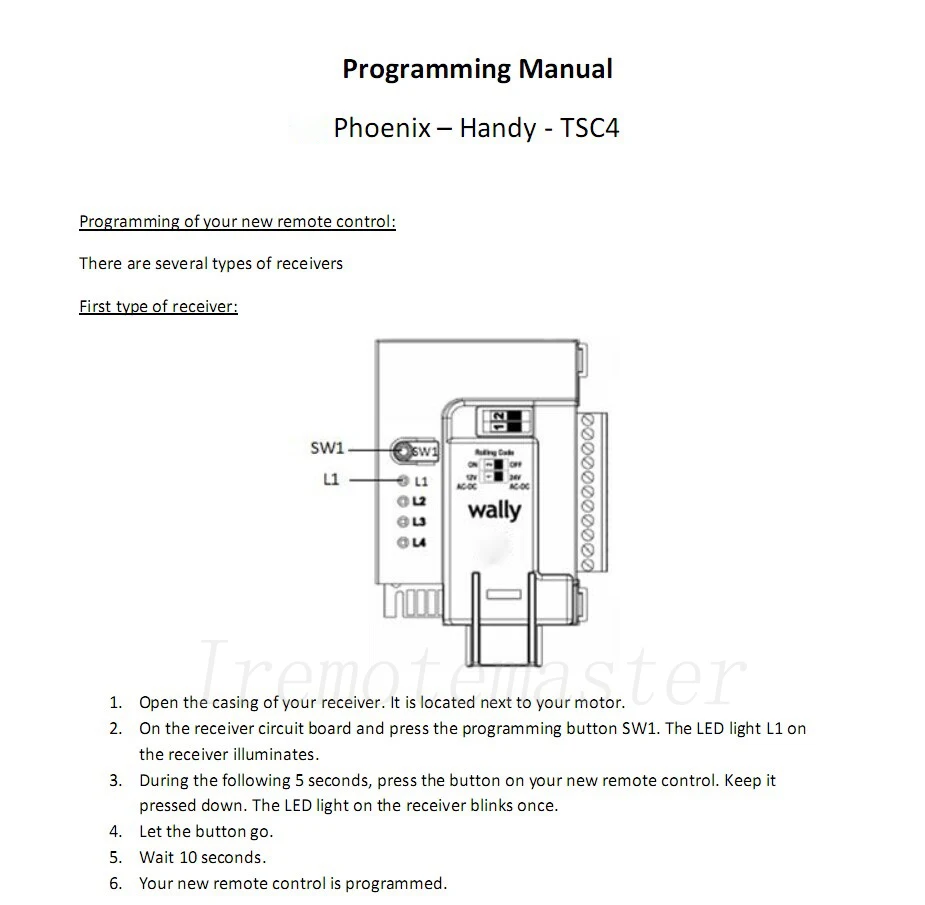 Для PHOENIX 2, 4, TSC2, TSC4, TRC2, TRC4, TXC2, TXC4, HANDY2, HANDY4 запасной пульт дистанционного управления гаражной дверью 433,92 МГц