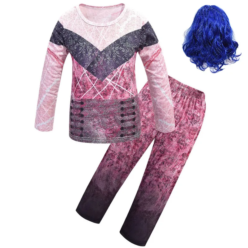 Детский костюм наследники 3 Evie, топы и штаны для косплея для девочек, набор париков, костюмы для вечевечерние на Хэллоуин из 3 предметов