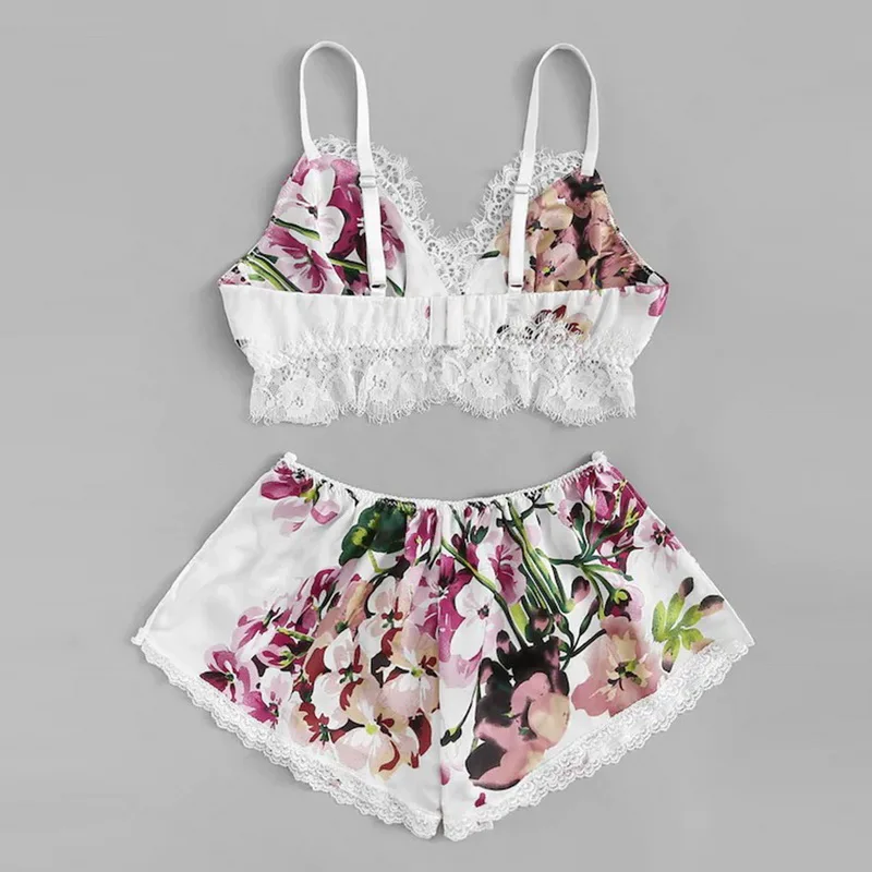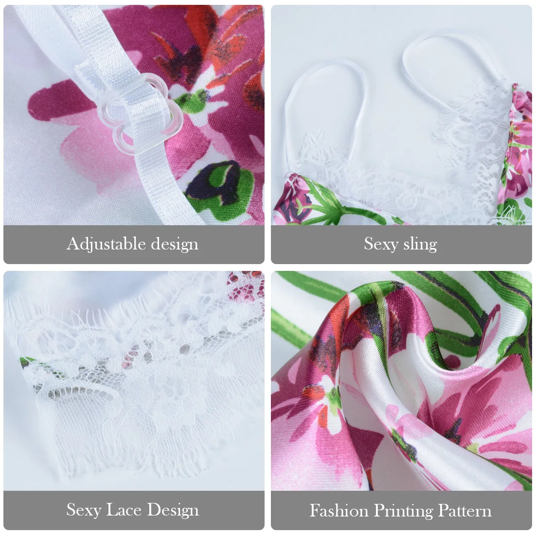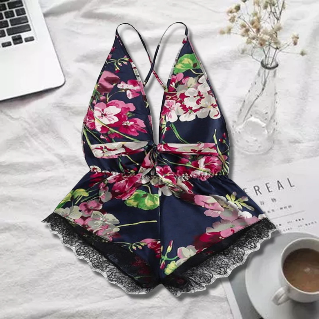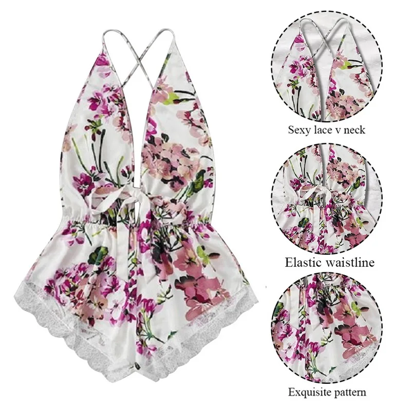 Соблазнительный женский кружевной Цветочный комбинезон, 1 шт., нижнее белье, спортивная одежда с принтом, спортивный костюм с глубоким V-образным вырезом и бантом, Свободный комбинезон с принтом