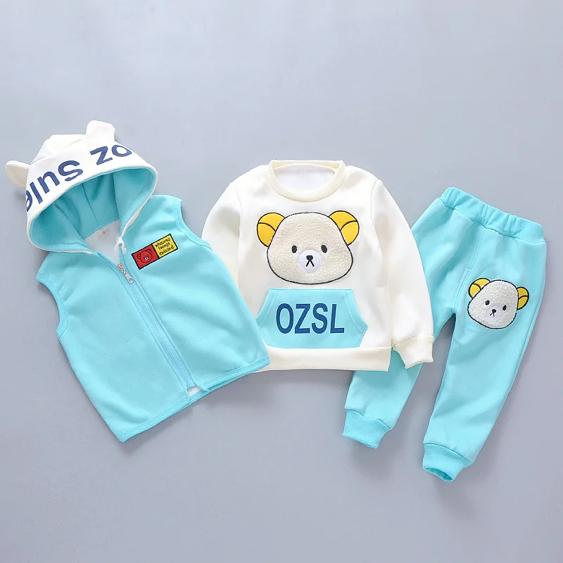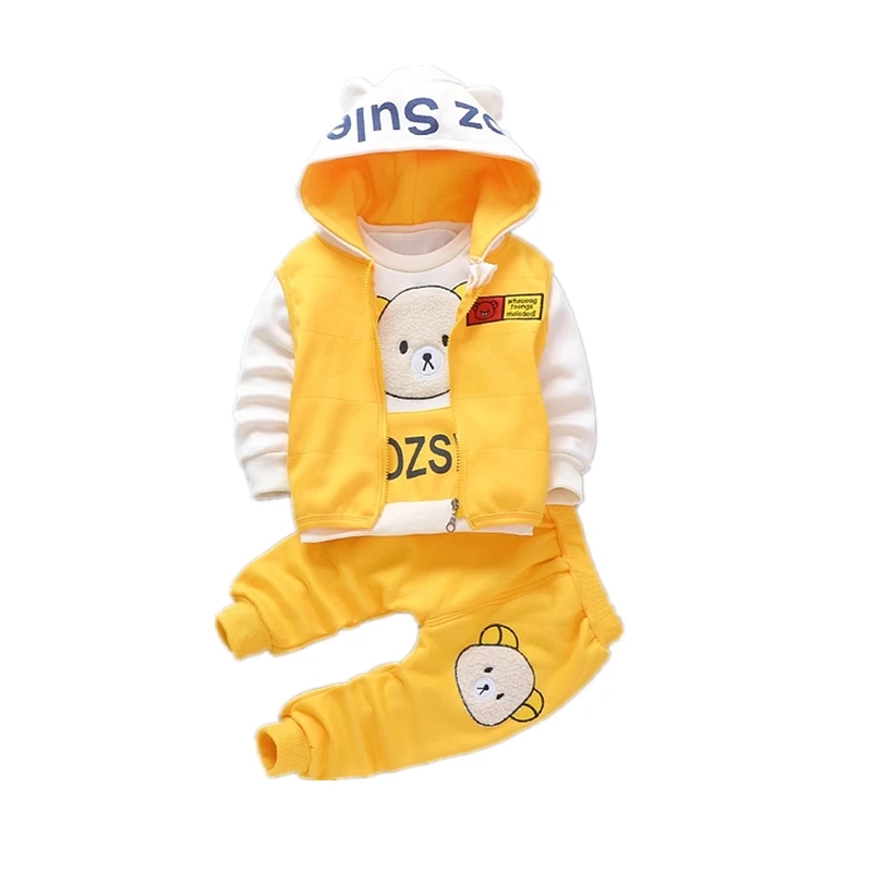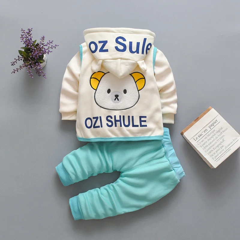 Новинка; Сезон весна-осень; Детская одежда для отдыха для маленьких мальчиков и девочек, куртка с капюшоном, футболка и брюки, 3 шт.компл. Дети младенческой костюм с детскими рисунками