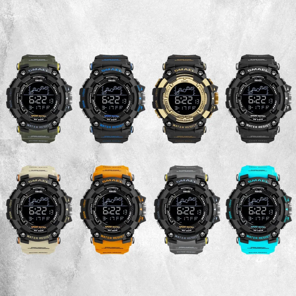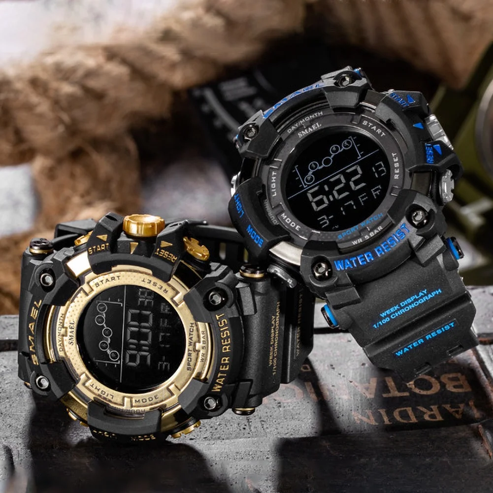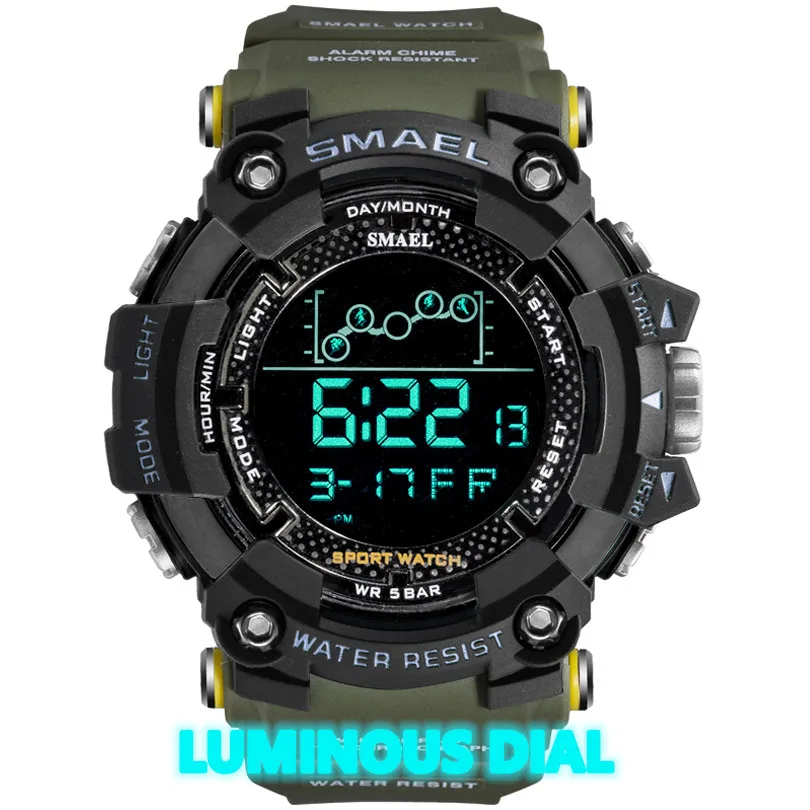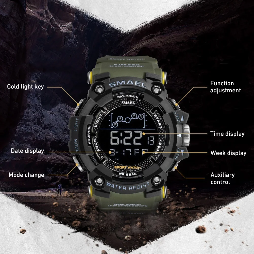 Мужские военные часы SMAEL, новые модные повседневные светодиодные цифровые уличные спортивные водонепроницаемые светящиеся круглые циферблаты, электронные наручные часы