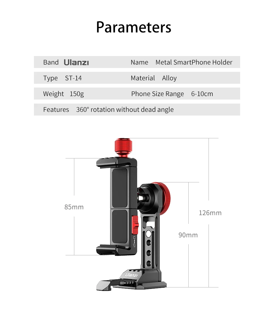 Ulanzi ST-14 Железный человек III Зажим для телефона Холодный башмак Универсальный держатель кронштейн быстроразъемное крепление для мобильного телефона Vlog расширение аксессуары