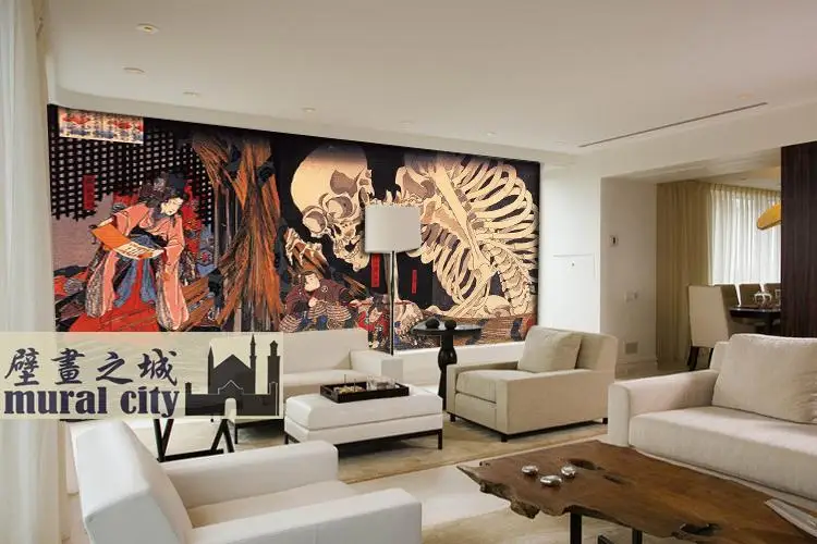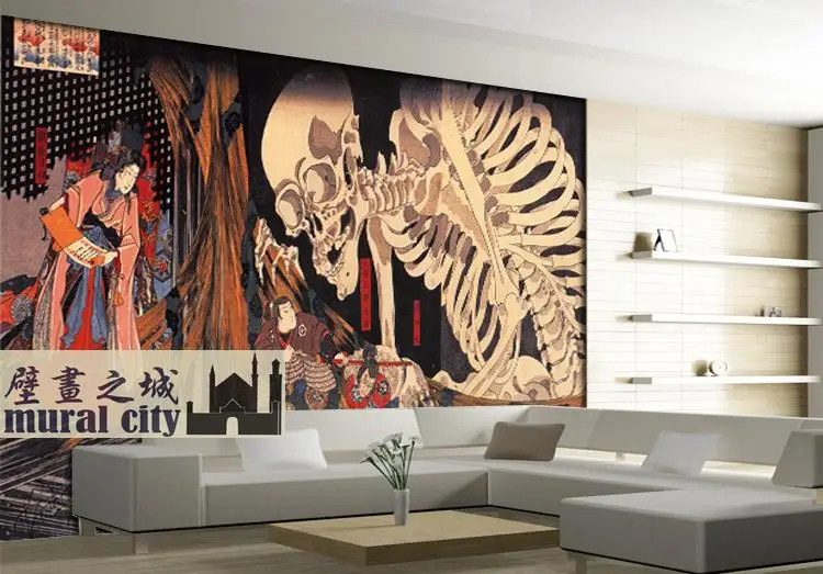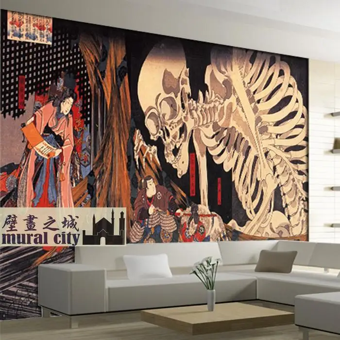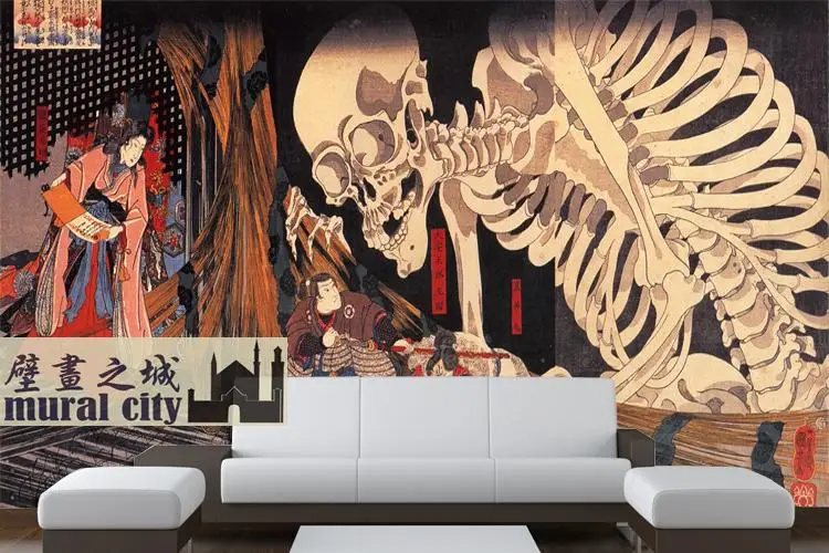 Японские обои "самураи" ukiyo скелет человека японской кухни Суши росписи Отель гостиная фон стены столовая спальня