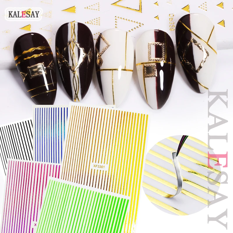 Золотые 3D наклейки для ногтей, полоски 12 цветов, самоклеящиеся переводные наклейки для ногтевого дизайна, наклейки для маникюра, дизайнерские наклейки s