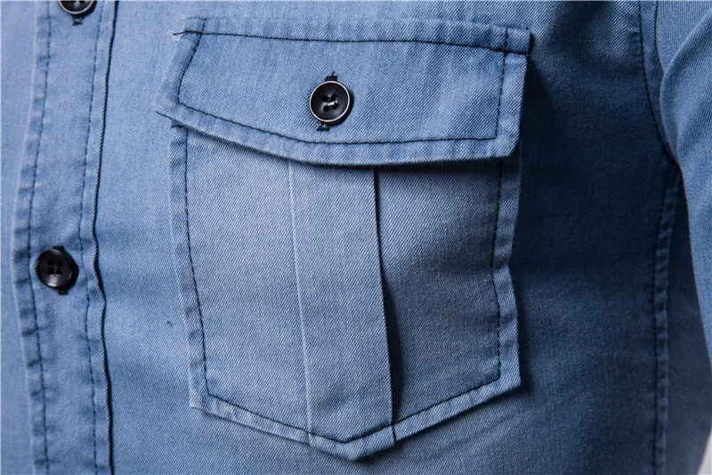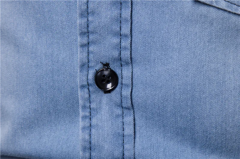 Мужская хлопковая рубашка с длинным рукавом, стирающаяся джинсовая ...