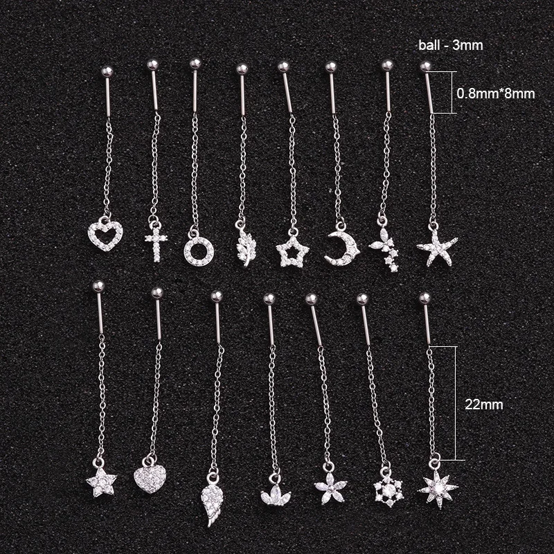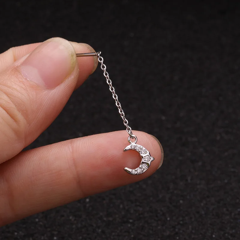 Серьги-кольца Для Пирсинга Ушей, изящные крошечные ювелирные украшения для пирсинга серебристого цвета с маленькими Cz, висящие сережки, сердцем, луной, звездой, 1 шт., 2020