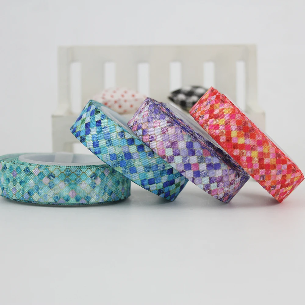 Геометрическая решеткаПечатные grosgrain ленты DIY материалы ручной работы, свадебный подарок обертка 16 мм 22 мм 25 мм 38 мм 57 мм 75 мм