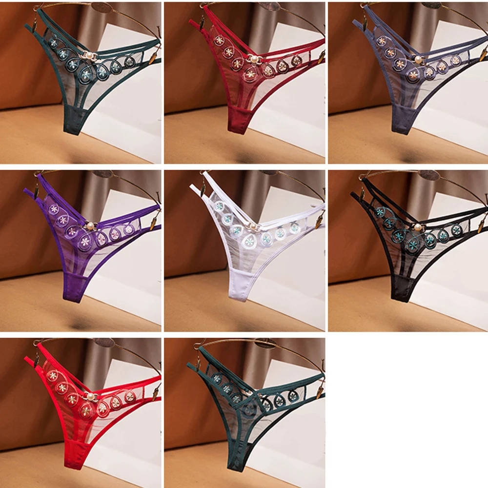 Сексуальные соблазнительные кружевные трусики с низкой талией, стринги с украшением из жемчуга, прозрачные сетчатые трусики, сексуальные стринги, нижнее белье