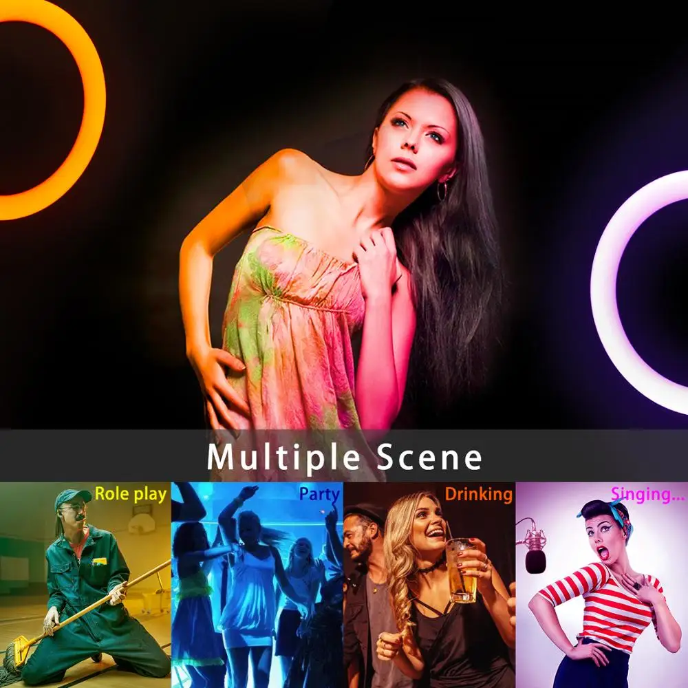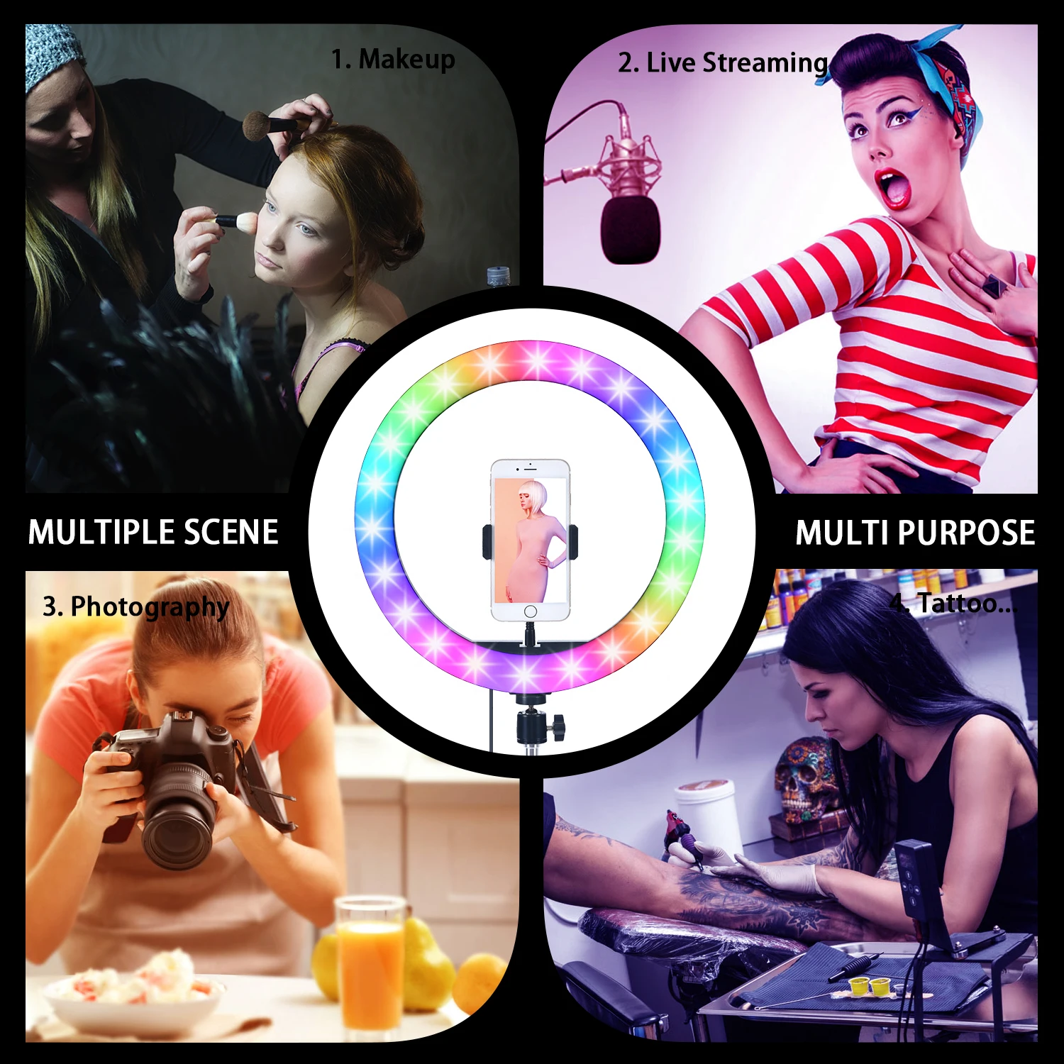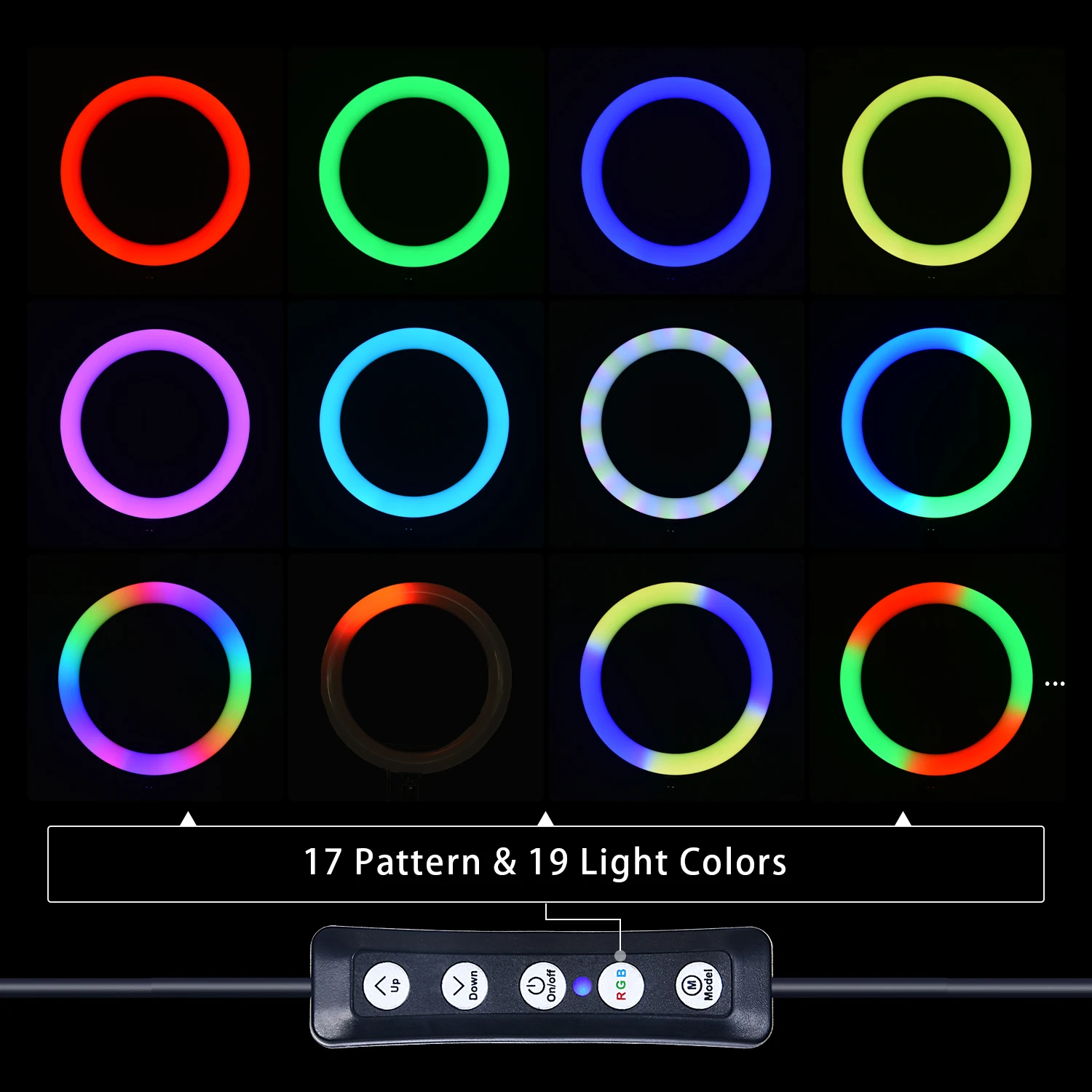 FOSOTO RGB Led Selfie Ring light с держателем USB фотографическое освещение лампа Ringlight с подставкой для макияжа видео Live Youtube