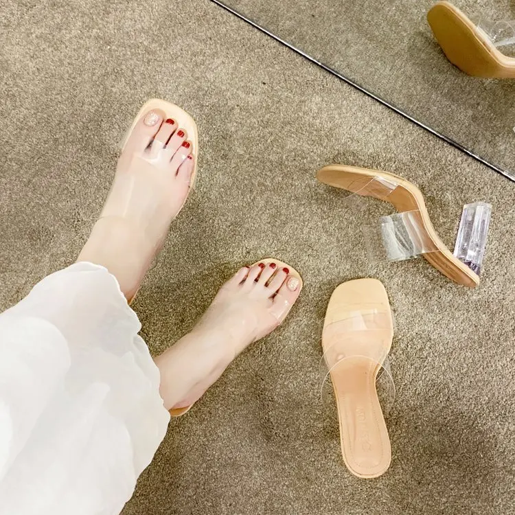Сандалии женские на высоком прозрачном каблуке, босоножки с квадрат...