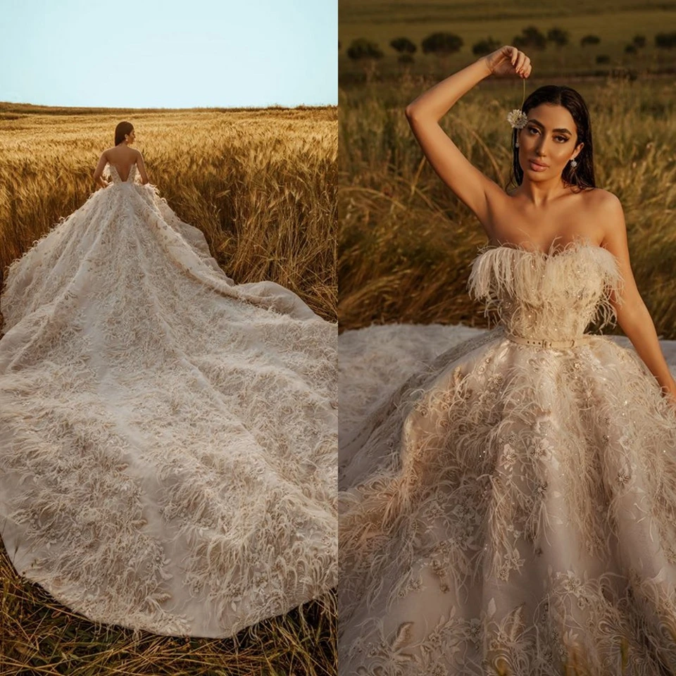 Женское вечернее платье со шлейфом, роскошное ТРАПЕЦИЕВИДНОЕ ПЛАТЬЕ с бусинами и перьями, платье для выпускного вечера