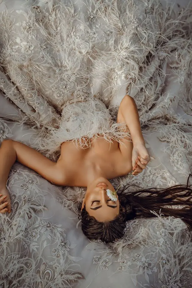 Пляжное платье невесты цвета шампанского, Кружевная аппликация ручн...