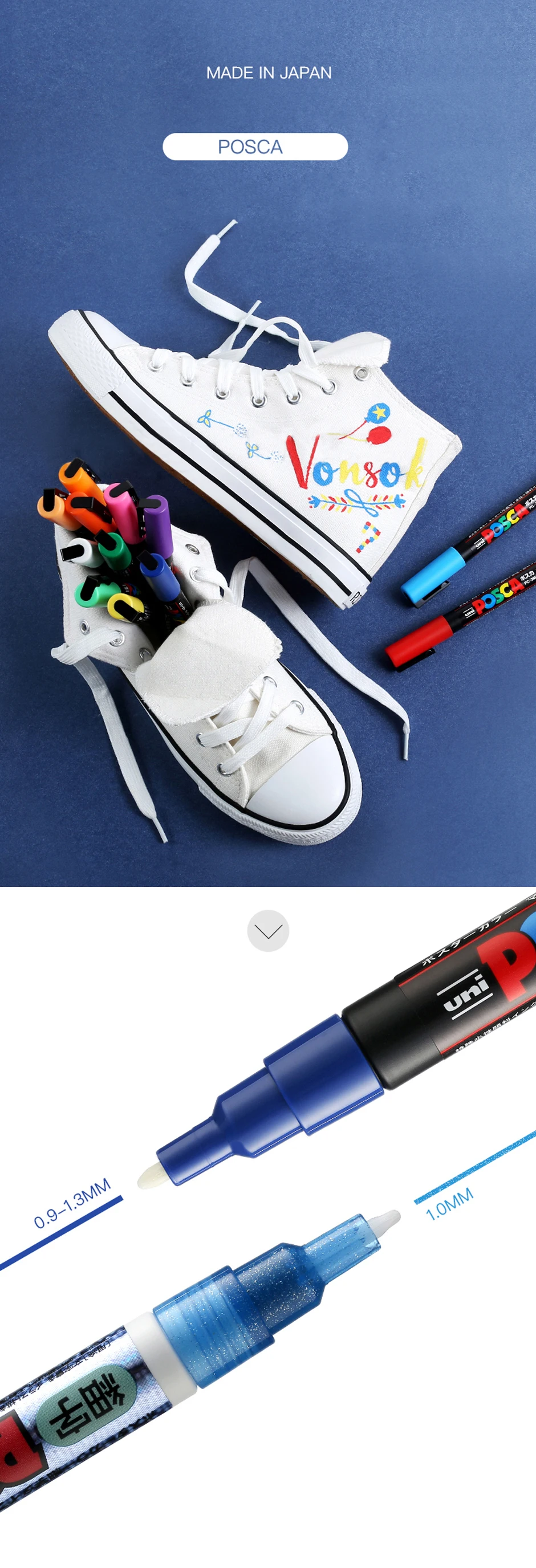 Характеристики POSCA Водостойкость, покрытие и специальная формула чернил делают чернила Непрозрачный и может быть написан на черном картоне, а также на металле, Гладкие и чистые поверхности, такие как стекло и пластик, также могут Пишите, сохраняя яркий цвет После того, как чернила высохнут, они не растворятся в воде и отлично Водонепроницаемость. Это не вызовет вспыхивания на бумаге из-за Чернила на водной основе, и нет неприятного запаха. Он может перекрываться и записываться на материале, и нет никаких следов Чернила на обратной стороне бумаги. Это идеальный выбор Для профессиональных поп-дизайнеров Бренд: UNI Номер модели: Posca PC-1M/3M/5M Цвет корпуса: черный Материал корпуса: пластик Ограниченная или выдвижная: защелкивающаяся Материал зажима: пластик Характеристики чернил: Постоянный Состав чернил: на пигментной основе/на водной основе Чернила многоразового использования: нет Длина: 142 мм Размер наконечника (ширина линии): 0,7 мм/0,9 мм ~ 1,3 мм/1,8 мм ~ 2,5 мм PC-1M 21 цвет на выбор: Цвет: черный, синий, красный, белый, зеленый, желтый, золотой, серебряный, светильник-голубой, розовый, фиолетовый, оранжевый, фиолетовый, коричневый, светильник, зеленый, небесно-голубой, пастельно-фиолетовый, бледно-желтый, пастельно-оранжевый, пастельно-зеленый, розовый светильник, коралловый розовый PC-3M доступны 24 цвета: Черный, синий, коричневый, золотой, желтый, серый, зеленый, светло-голубой, светло-оранжевый, оранжевый, розовый, фиолетовый, красный, белый, желтый, золотой, серебряный, желтый, зеленый, пастельный желтый, пастельно-Зеленый, пастельно-фиолетовый, пастельно-оранжевый, светло-розовый, небесно-голубой и коралловый розовый. PC-5M доступны 24 цвета: Черный, синий, коричневый, золотой, желтый, серый, зеленый, светло-голубой, светло-оранжевый, оранжевый, розовый, фиолетовый, красный, белый, желтый, золотой, серебряный, желтый, зеленый, пастельный желтый, пастельно-Зеленый, пастельно-фиолетовый, пастельно-оранжевый, светло-розовый, небесно-голубой и коралловый розовый.