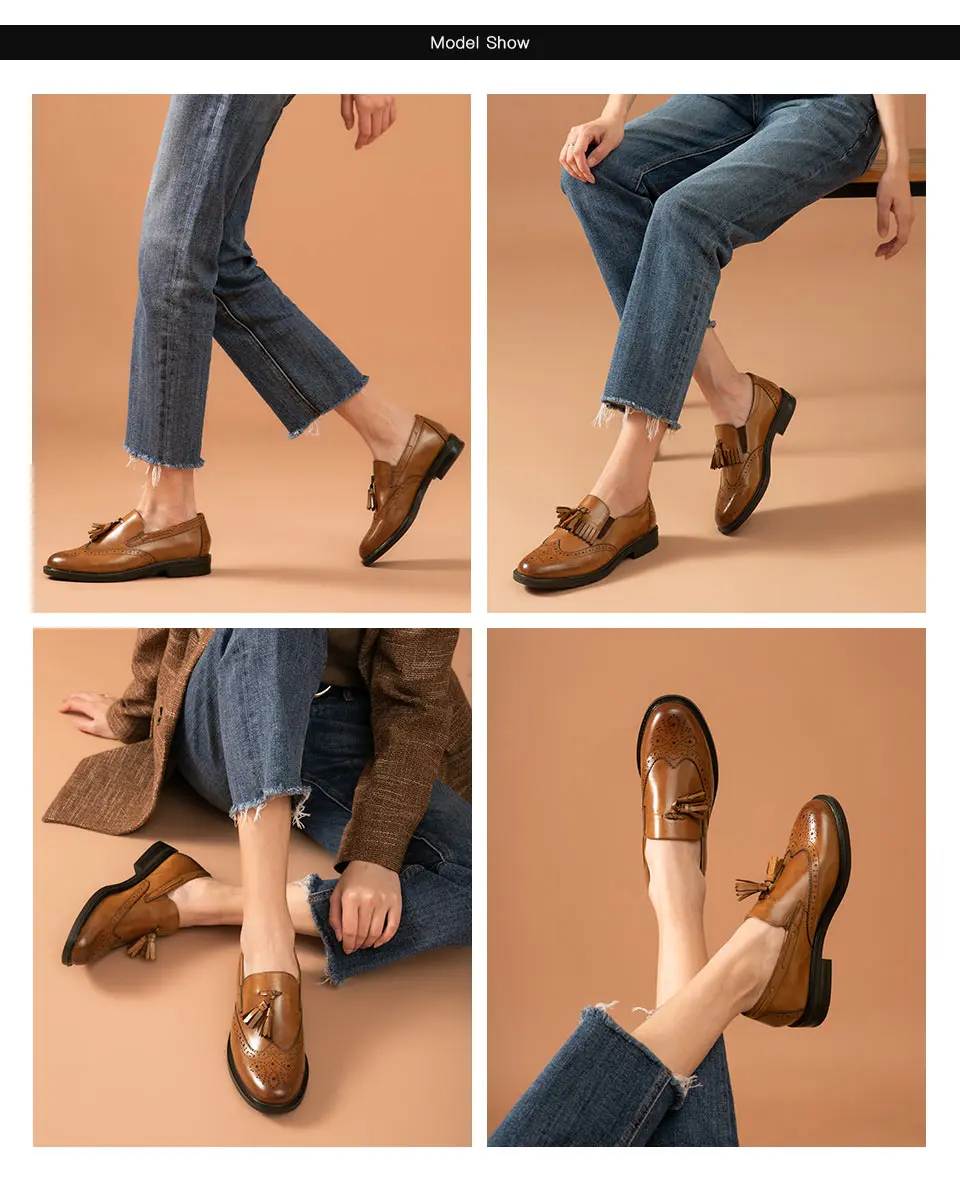 Лоферы женские из натуральной телячьей кожи, с бахромой и круглым носком, ручная работа, осень 27188