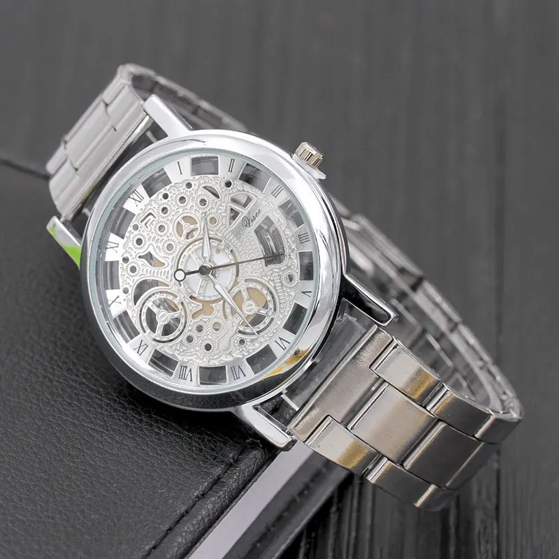 Часы мужские кварцевые со стальным полым корпусом, в стиле ретро