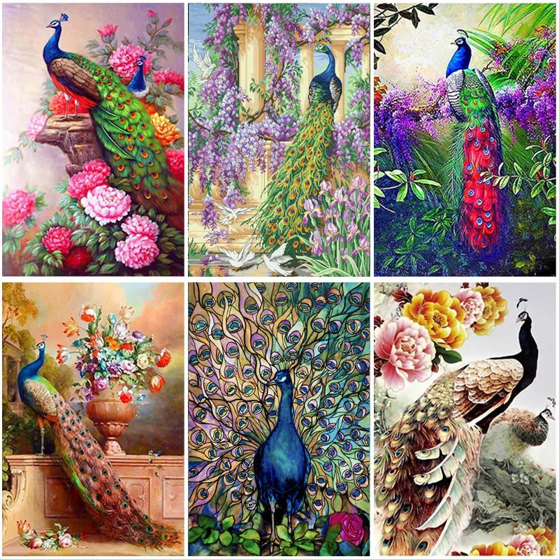 Павлин 5D DIY Алмазная картина полная круглая дрель животное цветок вышивка крестиком Мозаика домашний Декор подарок