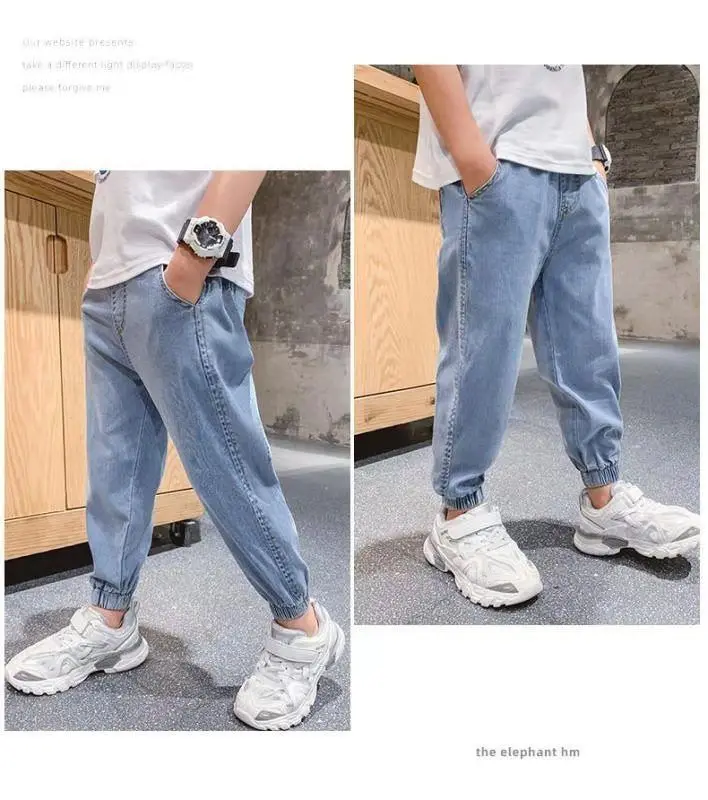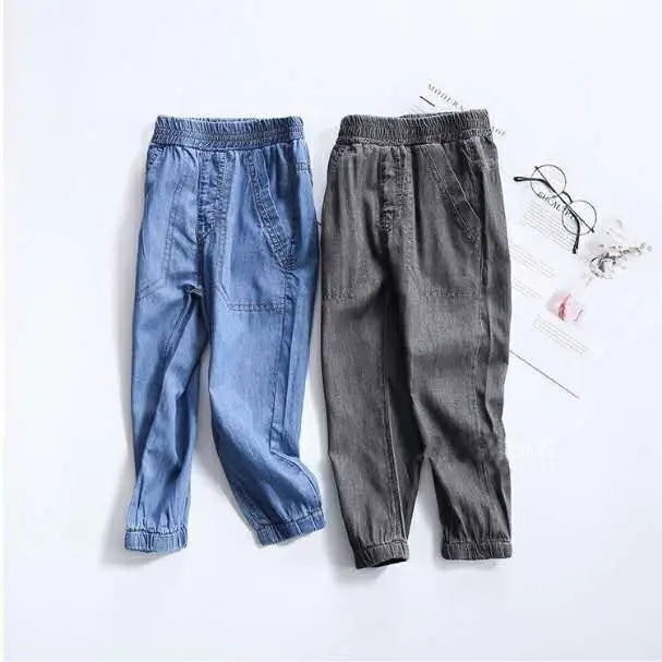 2021 новые детские тонкие джинсы для мальчиков и девочек летние повседневные штаны в полоску тонкие брюки