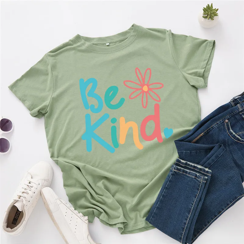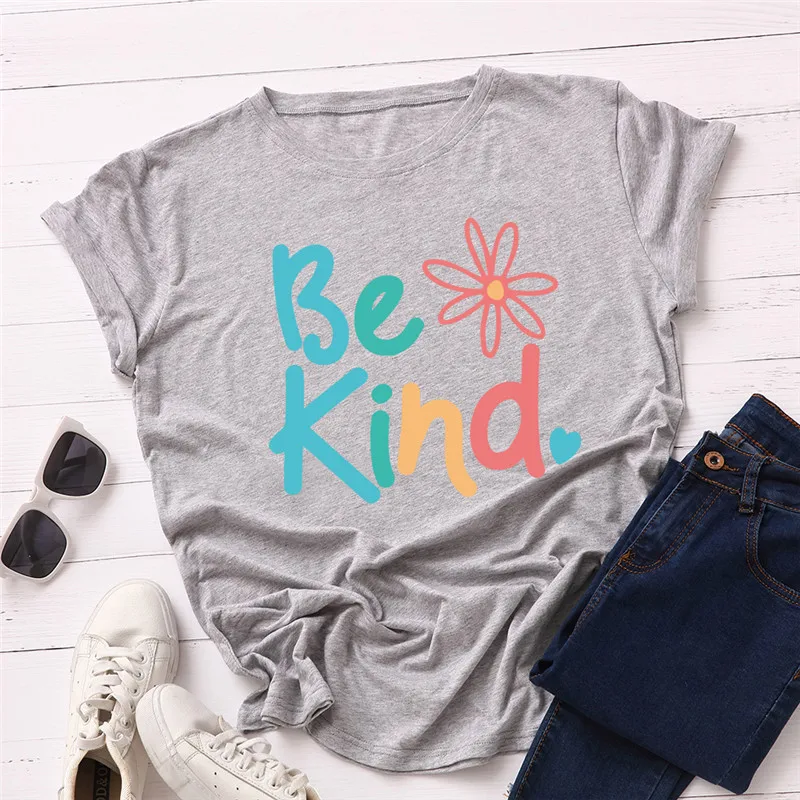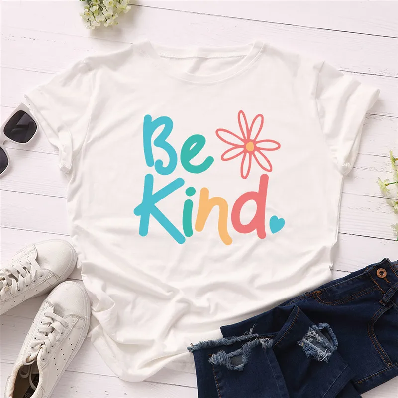 Женские рубашки, 100% хлопок, футболка с принтом букв и подсолнухов...