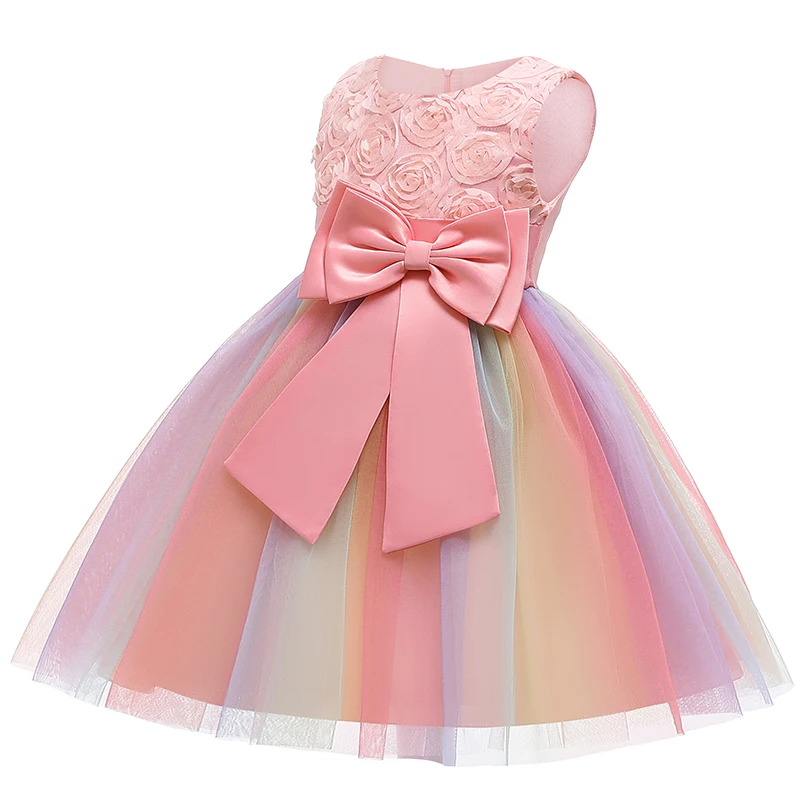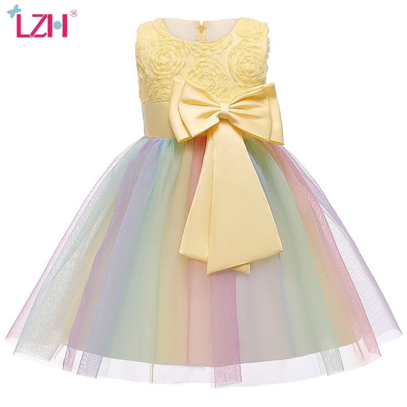 LZH цветочное свадебное платье для девочек, детская Радужная пачка, вечерние принцессы для дня рождения, одежда для девочек, Детский костюм на Хэллоуин