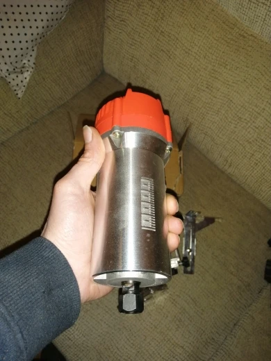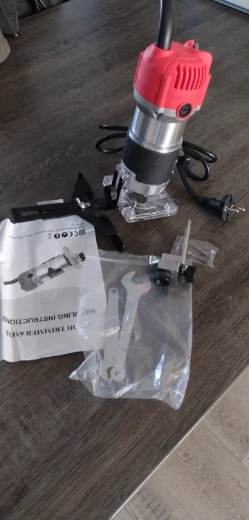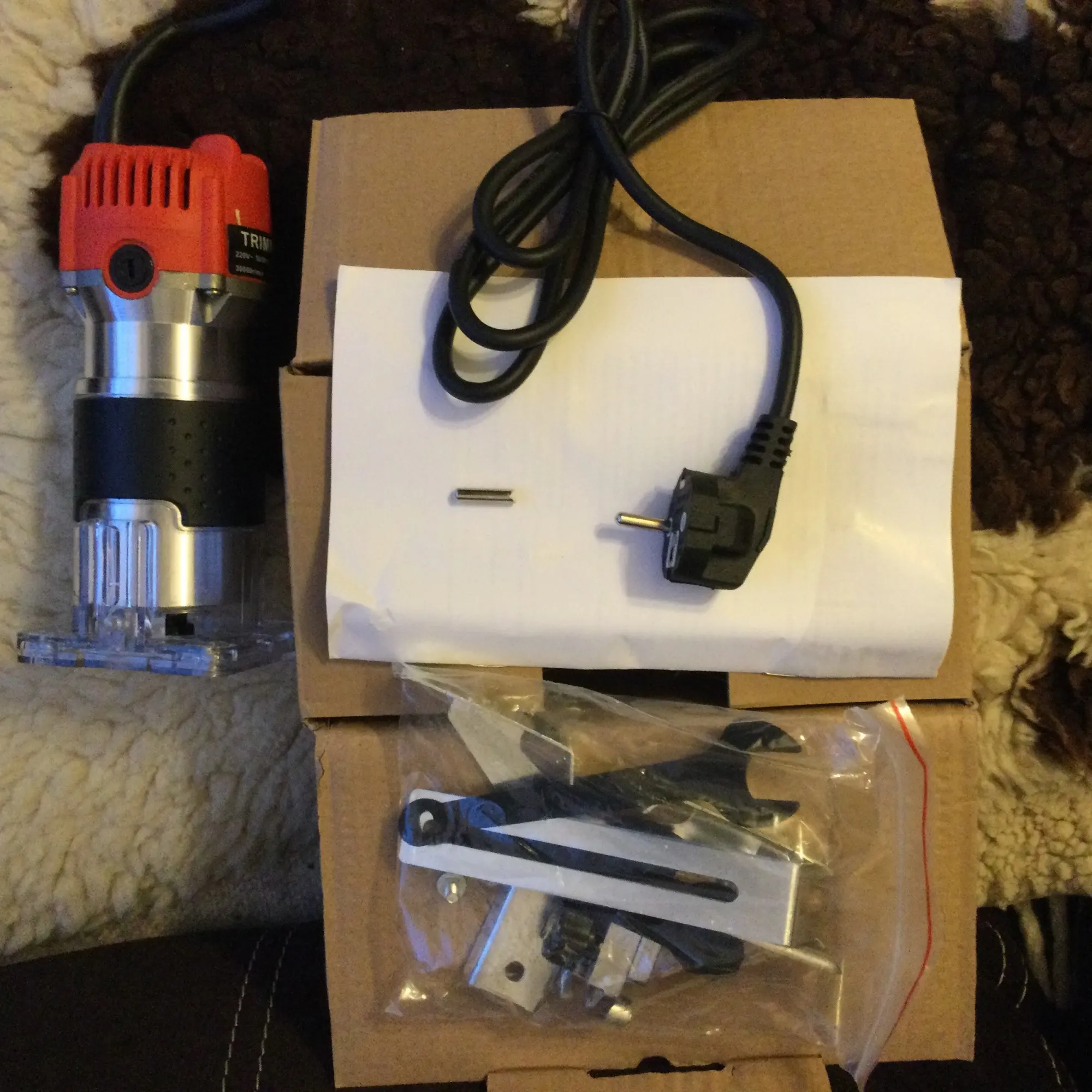 Доставка 28 дней, отслеживалась. Реплика МАКИТЫ с китайскими упрощениями: жиденько, немного кривовато-косовато, но в 3,6 раза дешевле. Выражаю сомнение по поводу 800 Вт и 30000 об. Что показали испытания: - без нагрузки - потребляет 200 Вт; - с кромочной радиусной фрезой 9,5 мм - 240 Вт; - с прорезной фрезой 16 мм. и вылетом 12 мм. - 450 Вт. Больше нагружать побоялся. Тем не менее под нагрузкой обороты не падают и с новыми фрезами режет чисто. Т.е. аппарат имеет право быть в домашнем использовании. Три твердых звезды - не надо преувеличивать в рекламе мощность. По большому счету рекомендую для домашнего использования.
