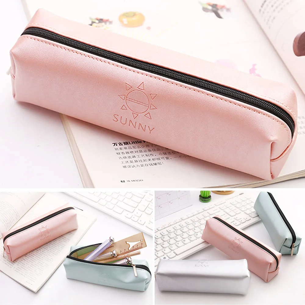 Чехол для карандашей, из искусственной кожи, с милым принтом