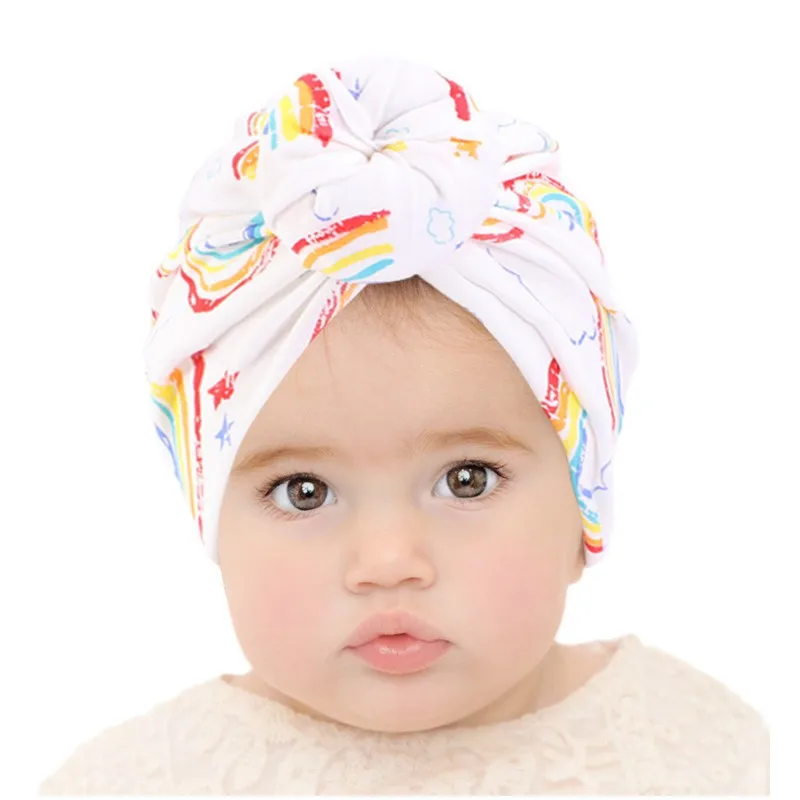 Шапка-пончик с цветами, для новорожденных, для мальчиков и девочек, тюрбан с принтом, хлопковые вязанные шапочки Ca