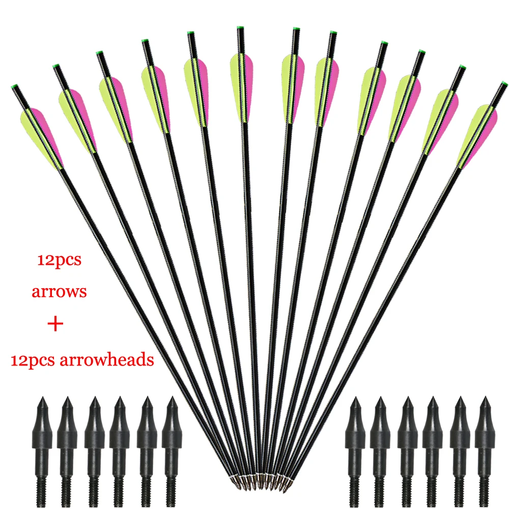 Стрелы из стекловолокна для охоты, стрелы для стрельбы с Каплевидным пластиковым пером для арбалета, 20 дюймов, 6 шт.12 шт.