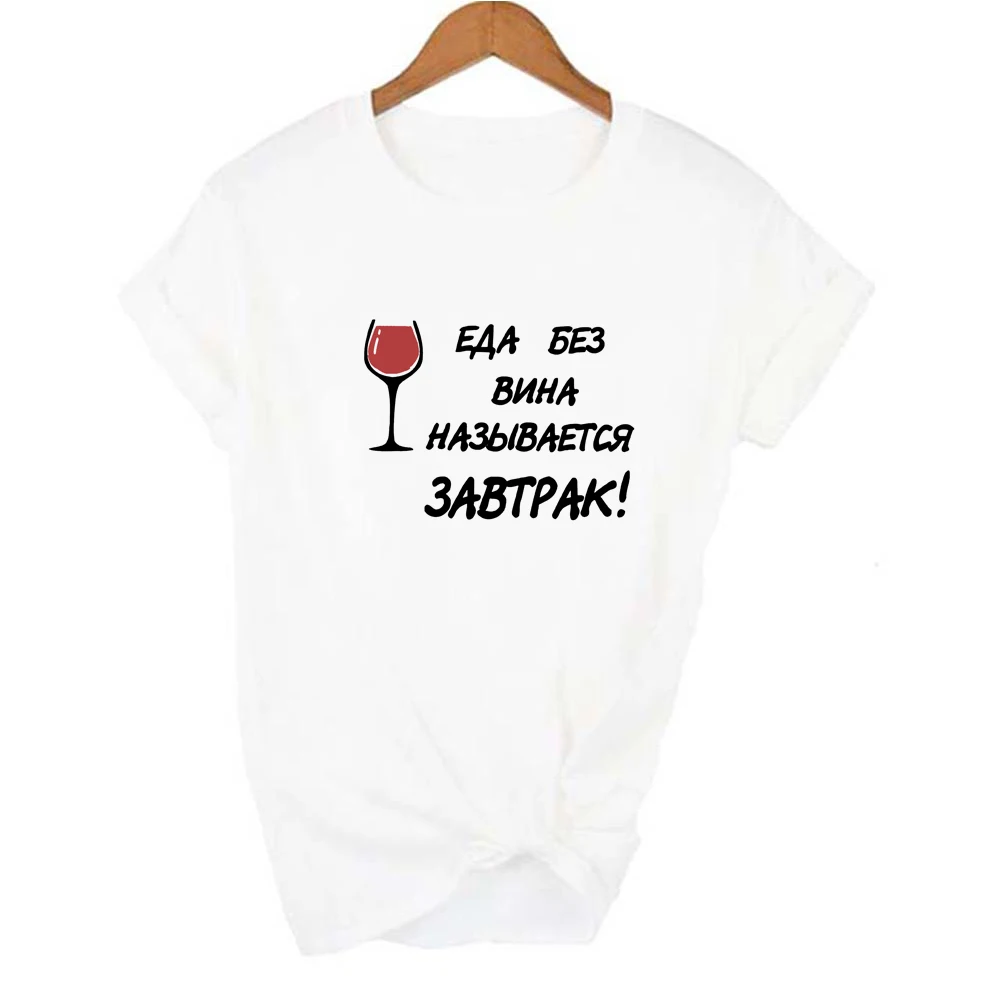 Футболка женская с забавным принтом в стиле Харадзюку, повседневный топ с круглым вырезом и надписями на русском языке, одежда с принтом вина, на лето