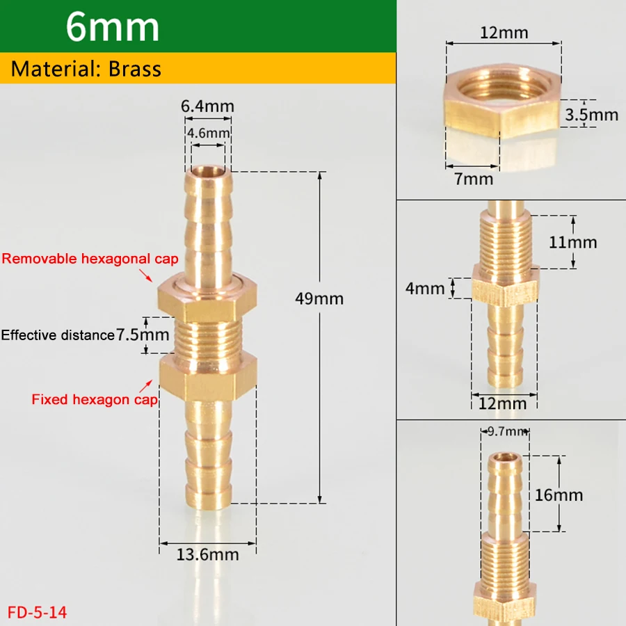 Внутренний диаметр шланга: 6/8/10/12/14/16 Барб