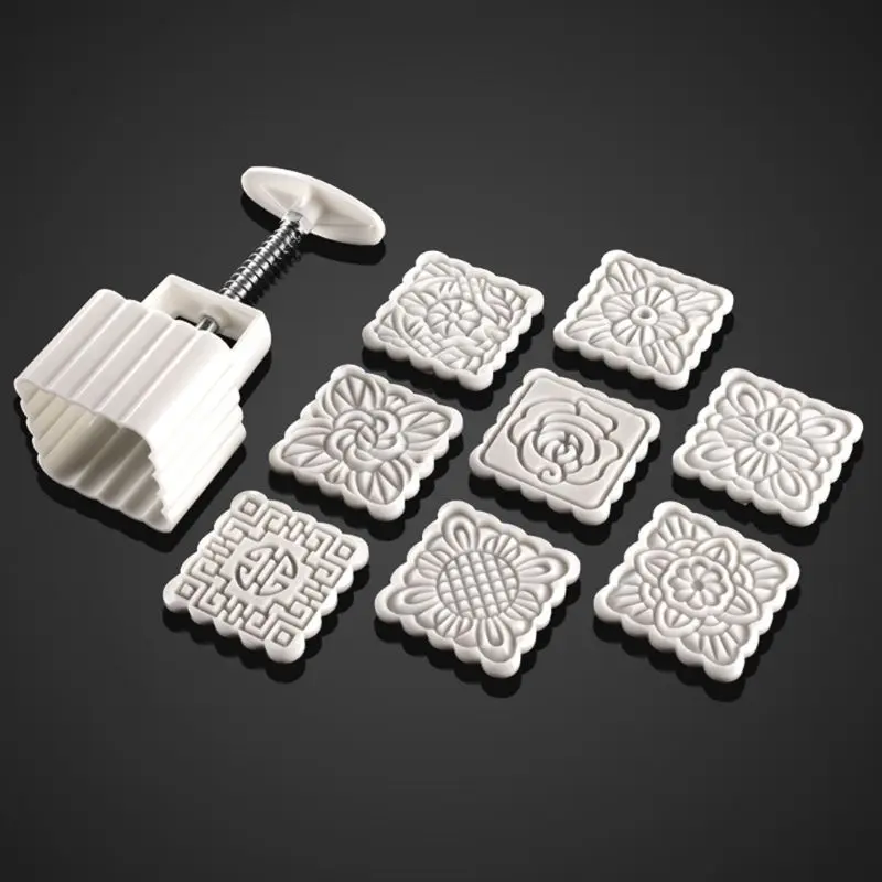 100 г Mooncake баррель плесень с 8 шт квадратные Цветочные штампы Ручной пресс луна торт кондитерские формы DIY формы для выпечки середины осени фестиваль