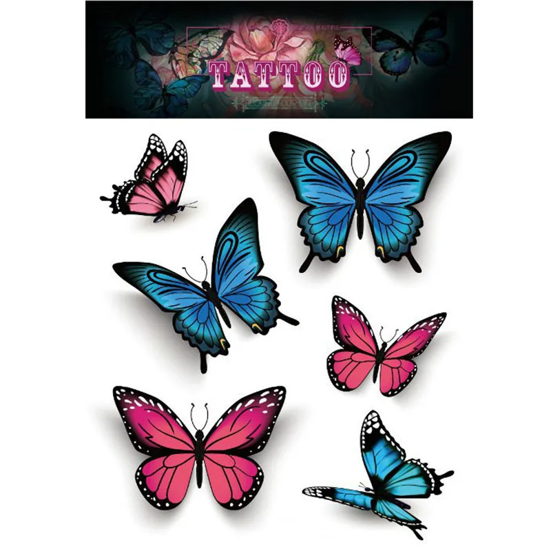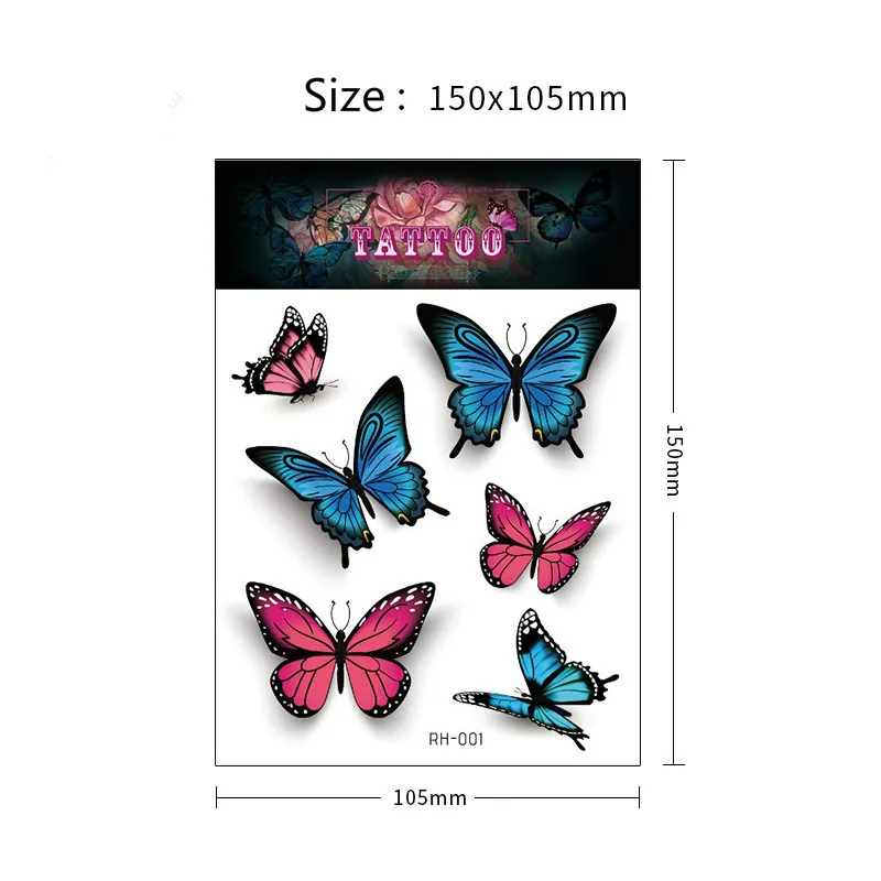 3D бабочка роза цветок перо татуировки водонепроницаемый Рождественский подарок 105*150 мм стикер татуировки для женский боди-арт стикер татуировки