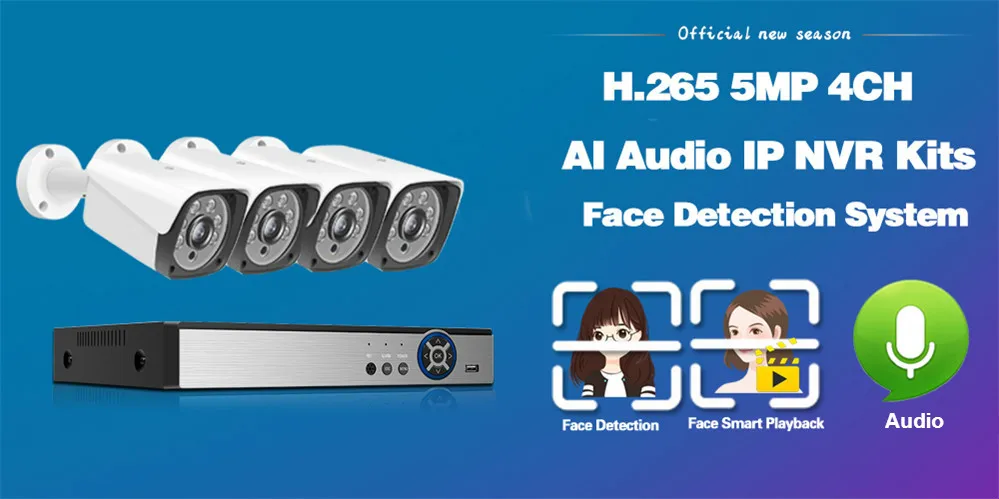 Система видеонаблюдения HKIDISTE H.265, 4 канала, 5 МП, POE, NVR, домашняя аудиосигнализация, ии IP-камера, комплект наружного видеонаблюдения