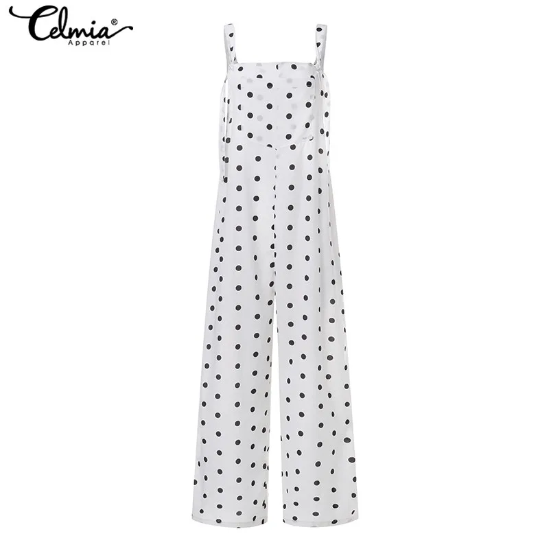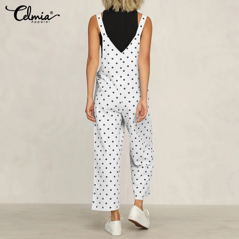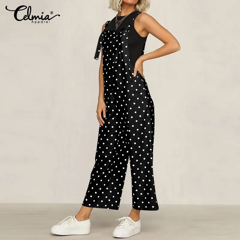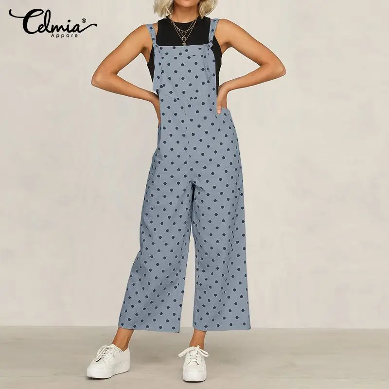 2021 Модные женские комбинезоны Celmia, повседневные пикантные Свободные Комбинезоны на бретелях без рукавов, элегантные широкие брюки, комбинезоны в горошек с принтом