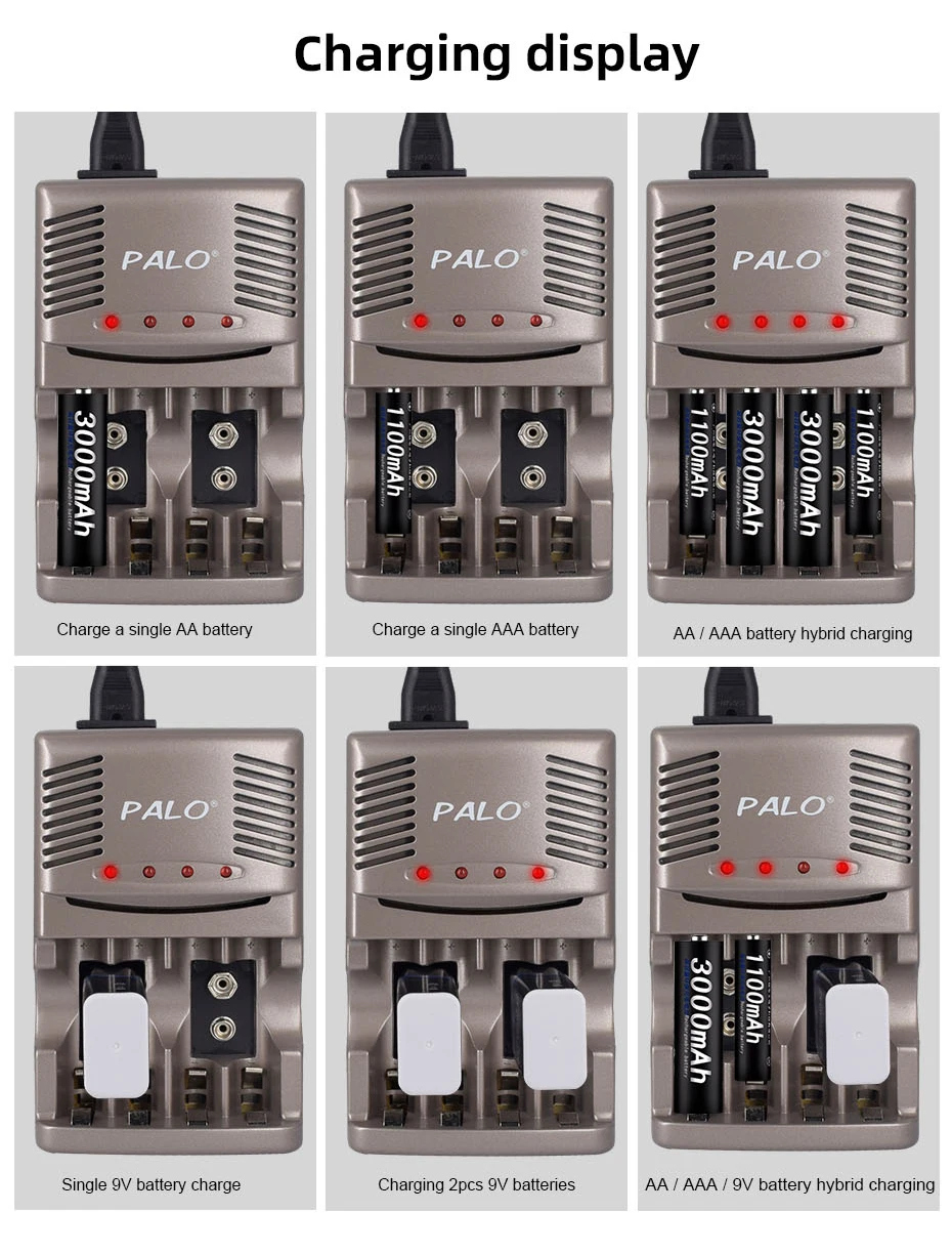Зарядное устройство PALO для Nimh аккумуляторов 1,2 в AAA 9 В, NiCd...