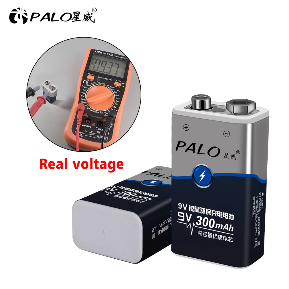 Перезаряжаемая nimh батарея PALO 9 в 300 мАч со светодиодным зарядным устройством для 1,2 в nimh aa aaa перезаряжаемая батарея 9 в nimh аккумуляторная батарея