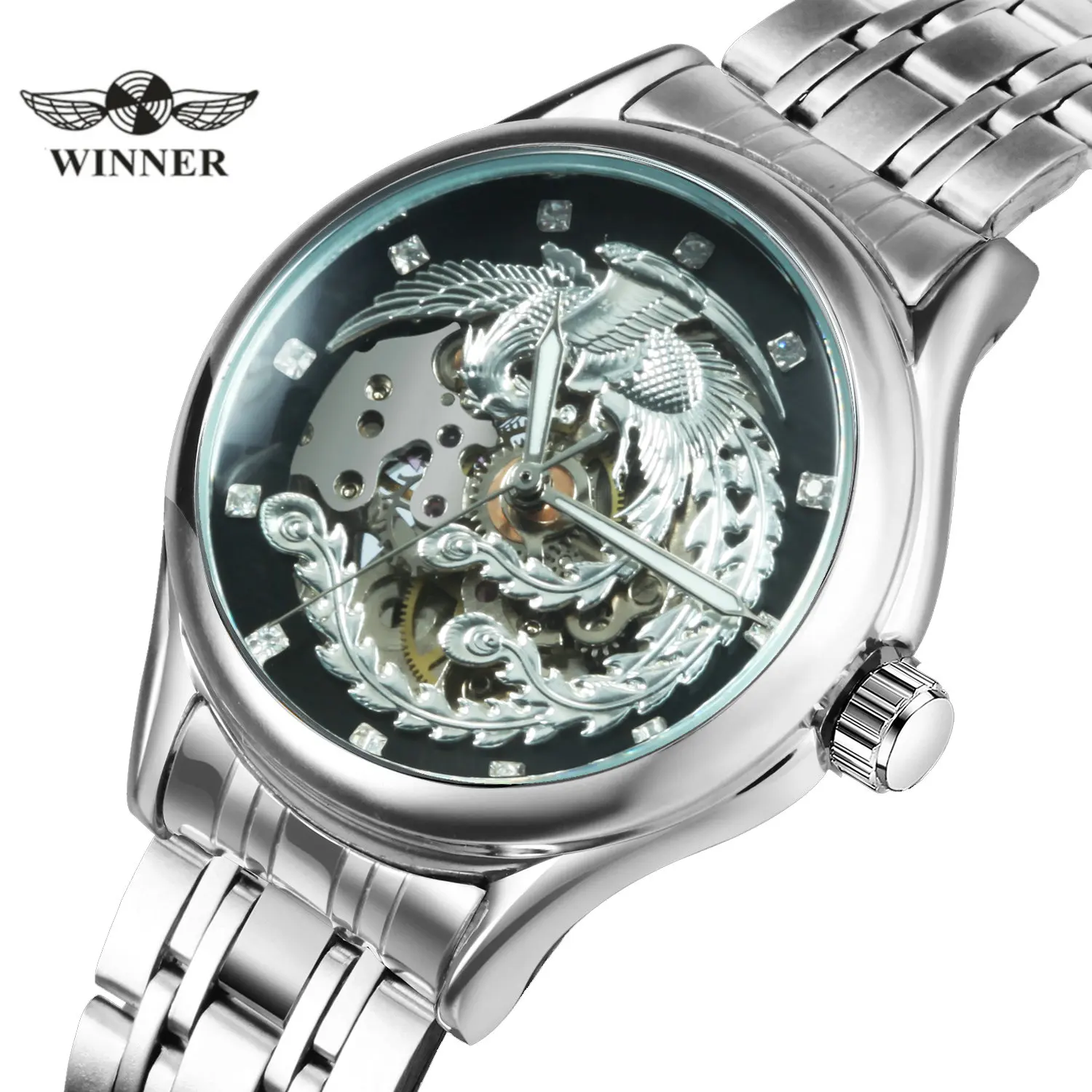 Женские Классические Механические часы WINNER Top, классические часы с металлическим ремешком, без бретелек