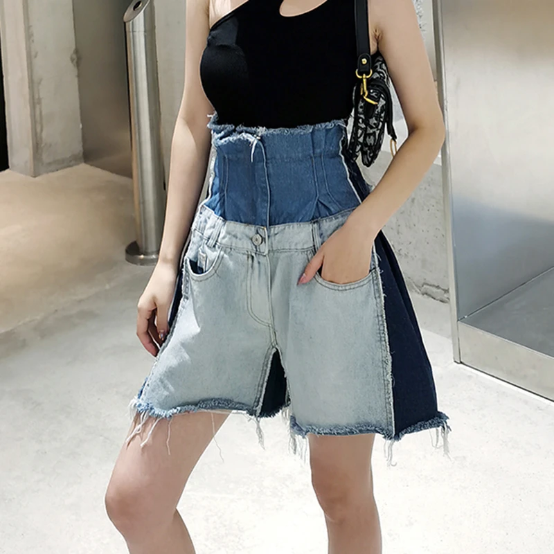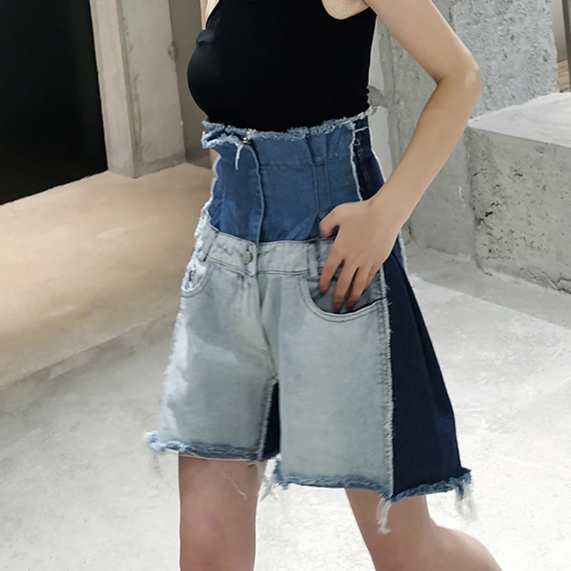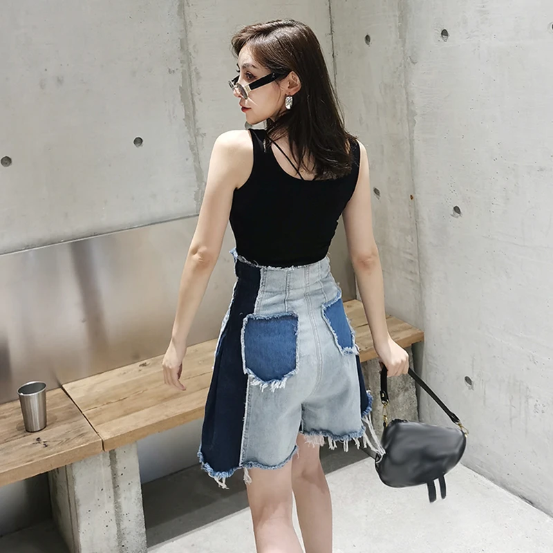 Женские Лоскутные шорты VGH, асимметричная Джинсовая туника с высокой талией и карманами, повседневные шорты, Женская Летняя мода 2020