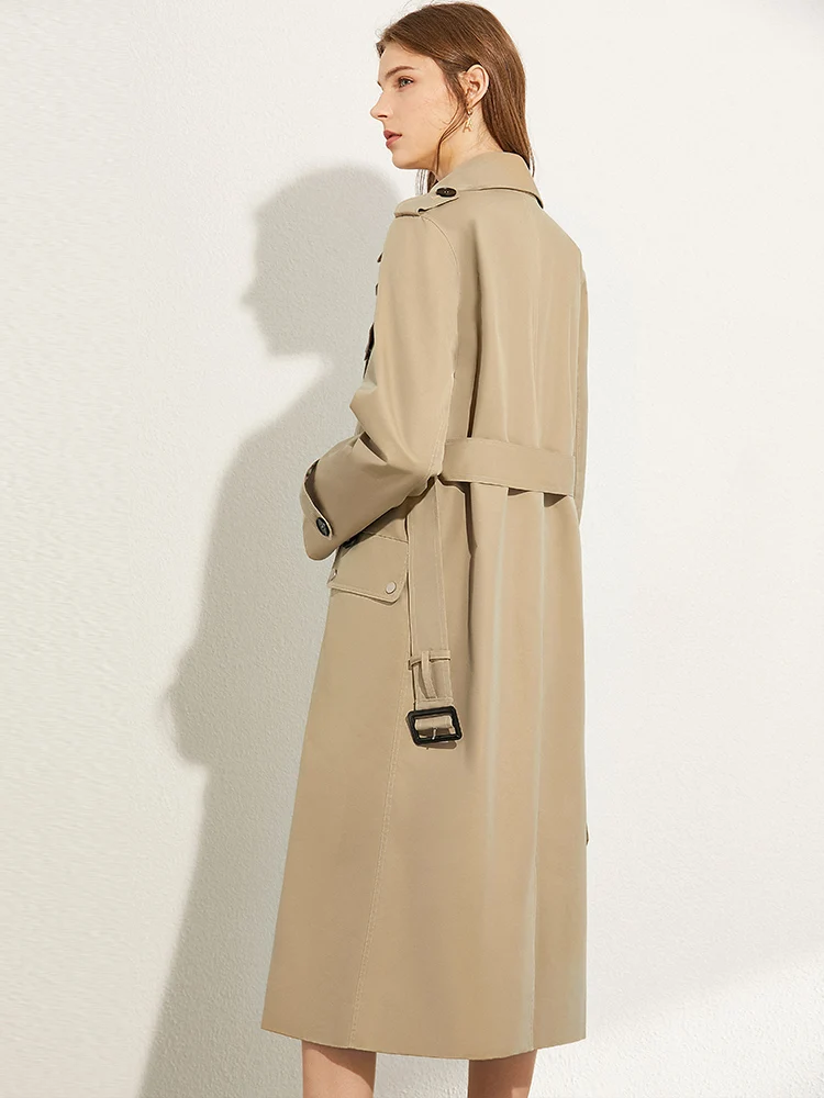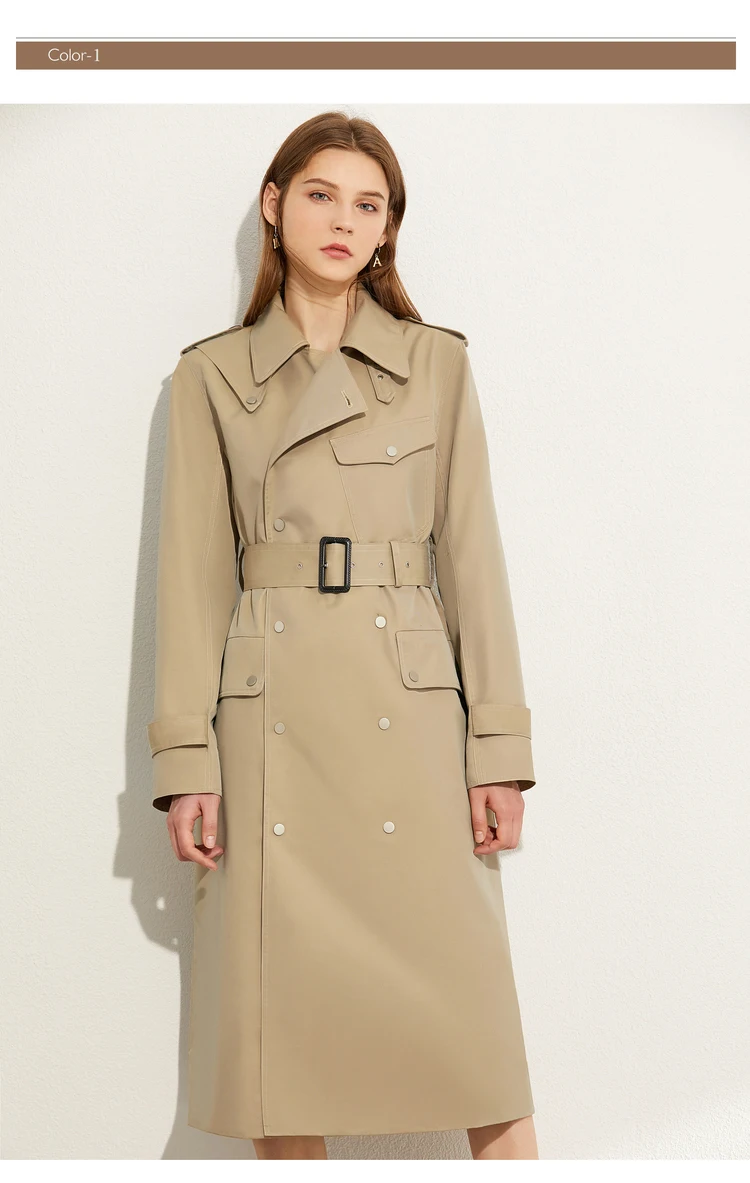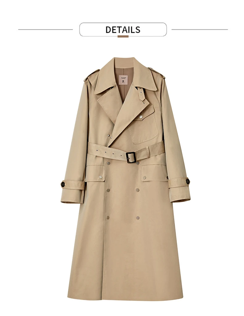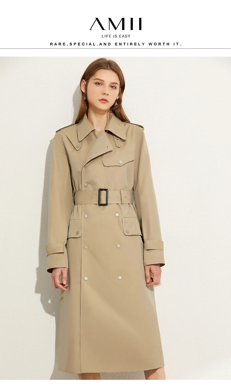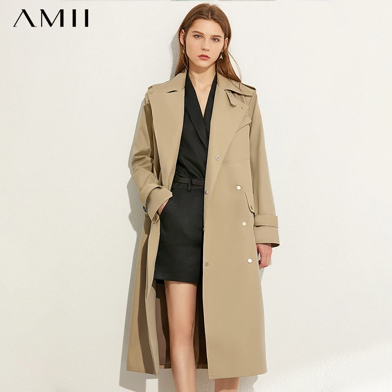 Женская однотонная ветровка AMII в минималистском стиле, двубортное пальто с лацканами и поясом, 12070333